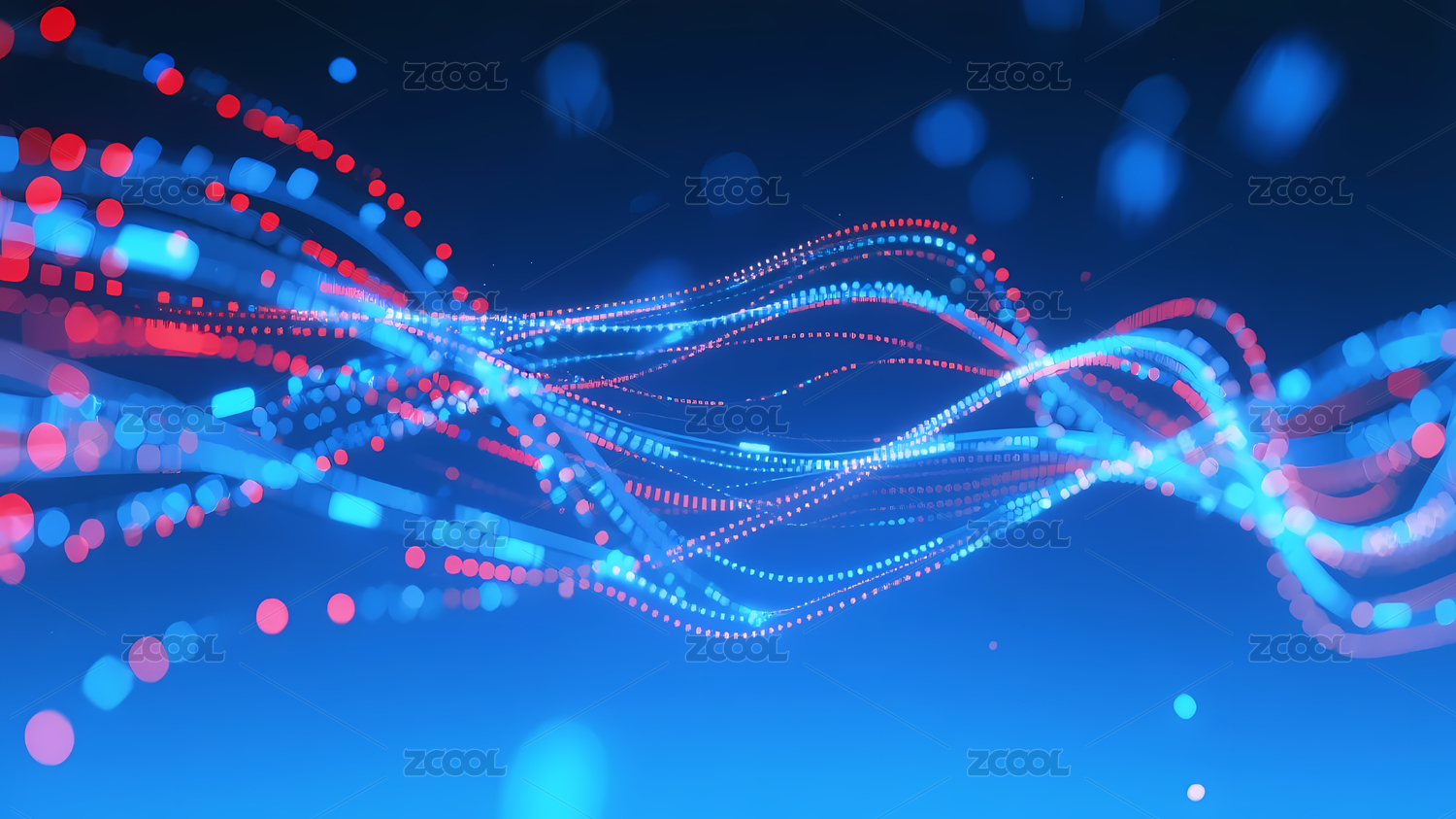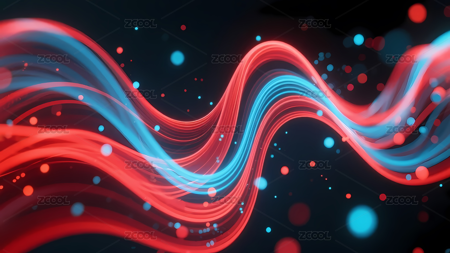 红蓝波浪线条光点