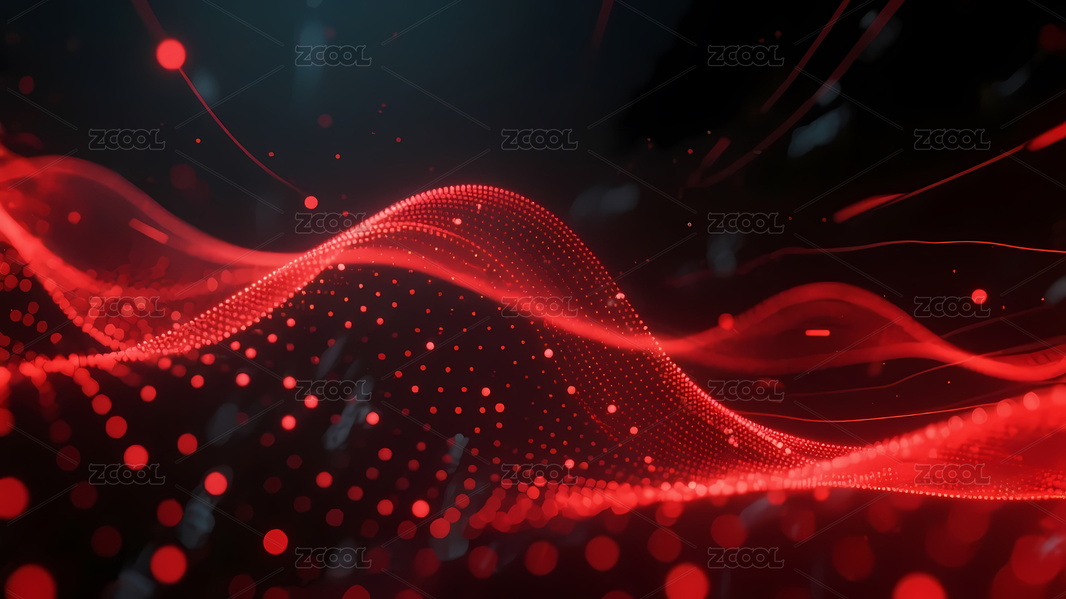 红色波浪线条光点流动