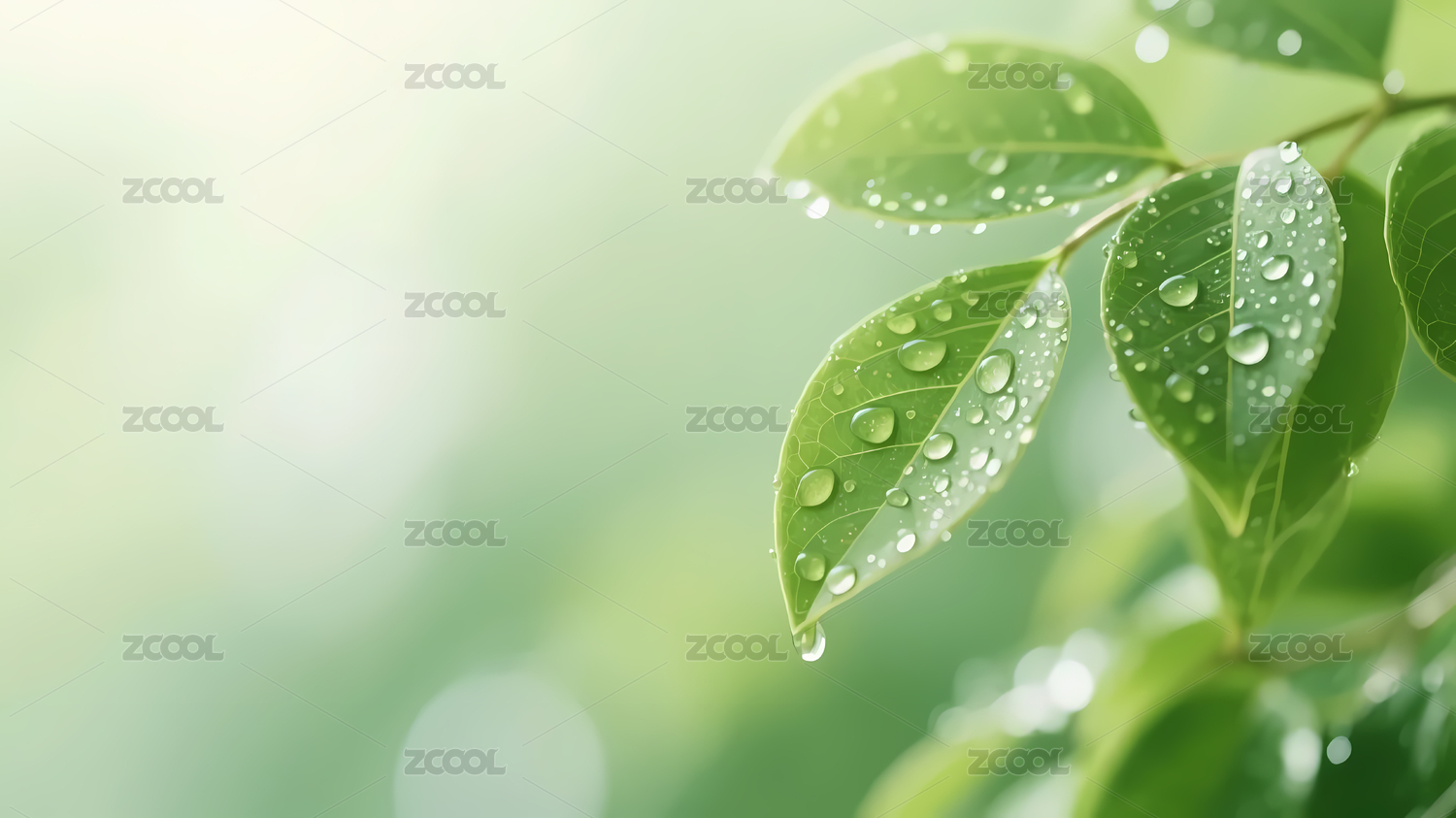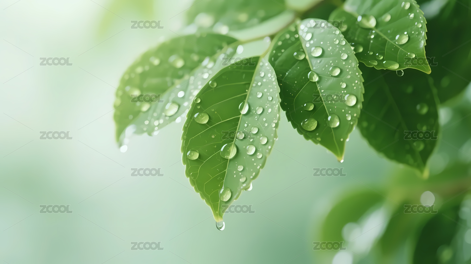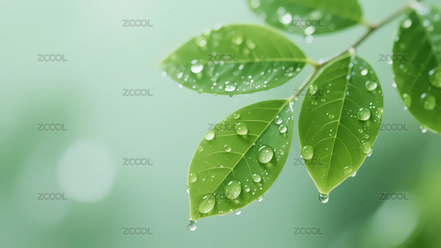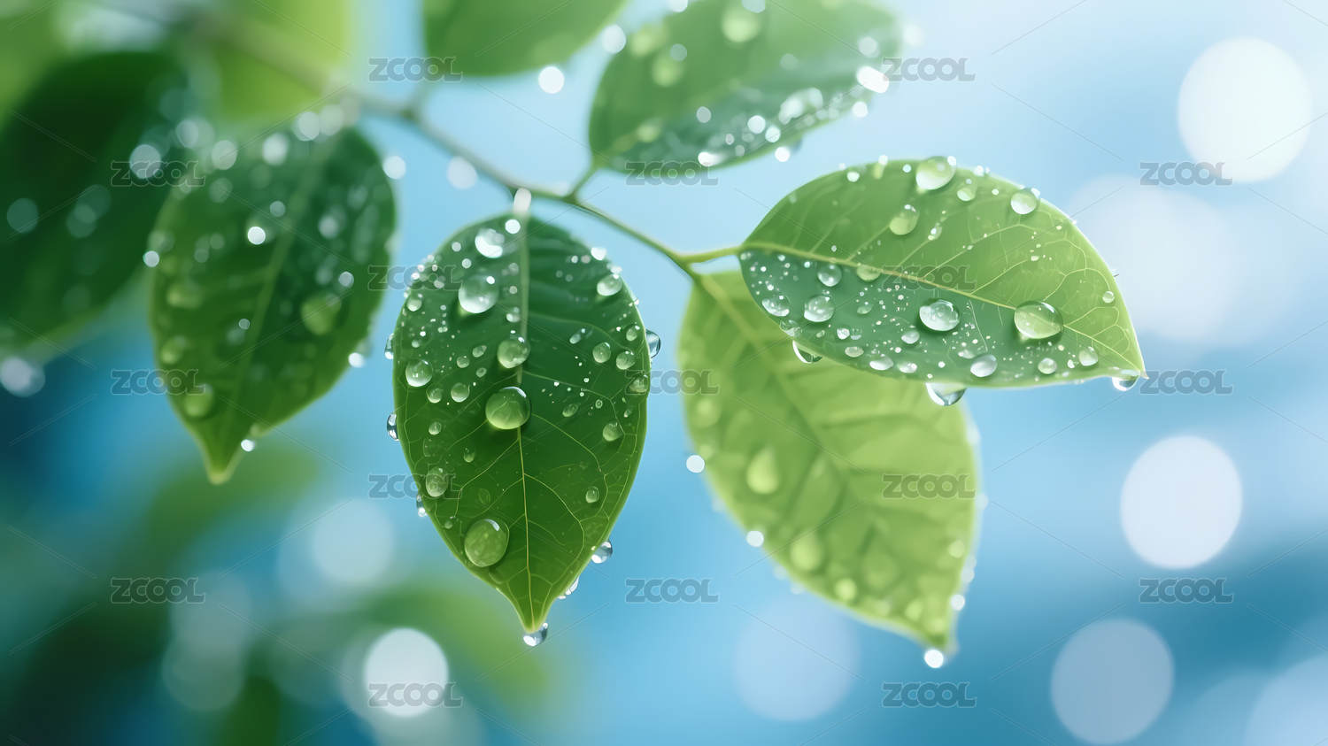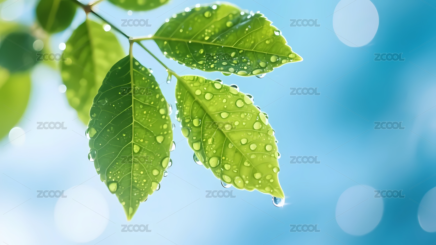 蓝色,背景,自然,清新,绿色,模糊,叶子,水珠,晶莹,叶面