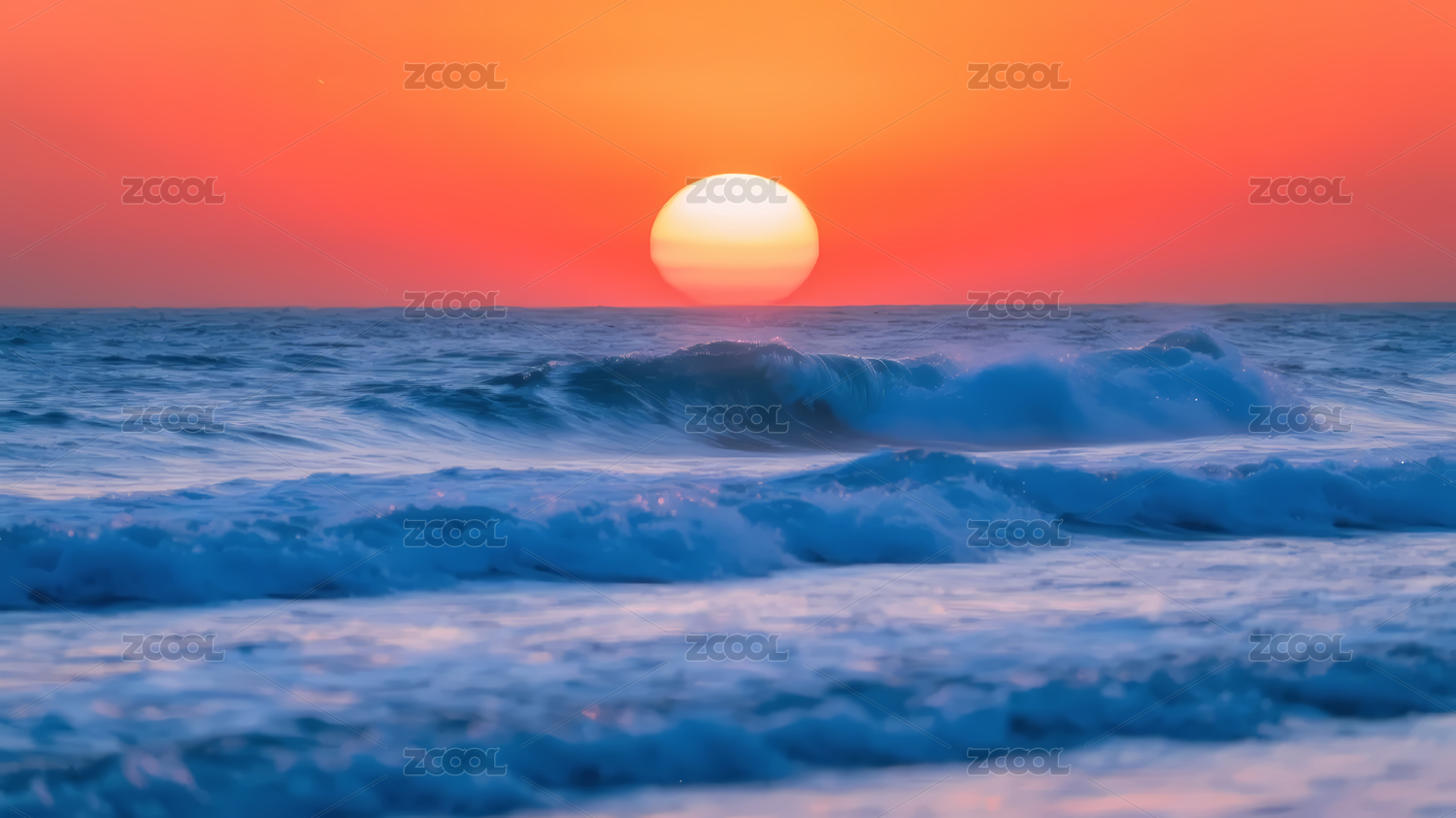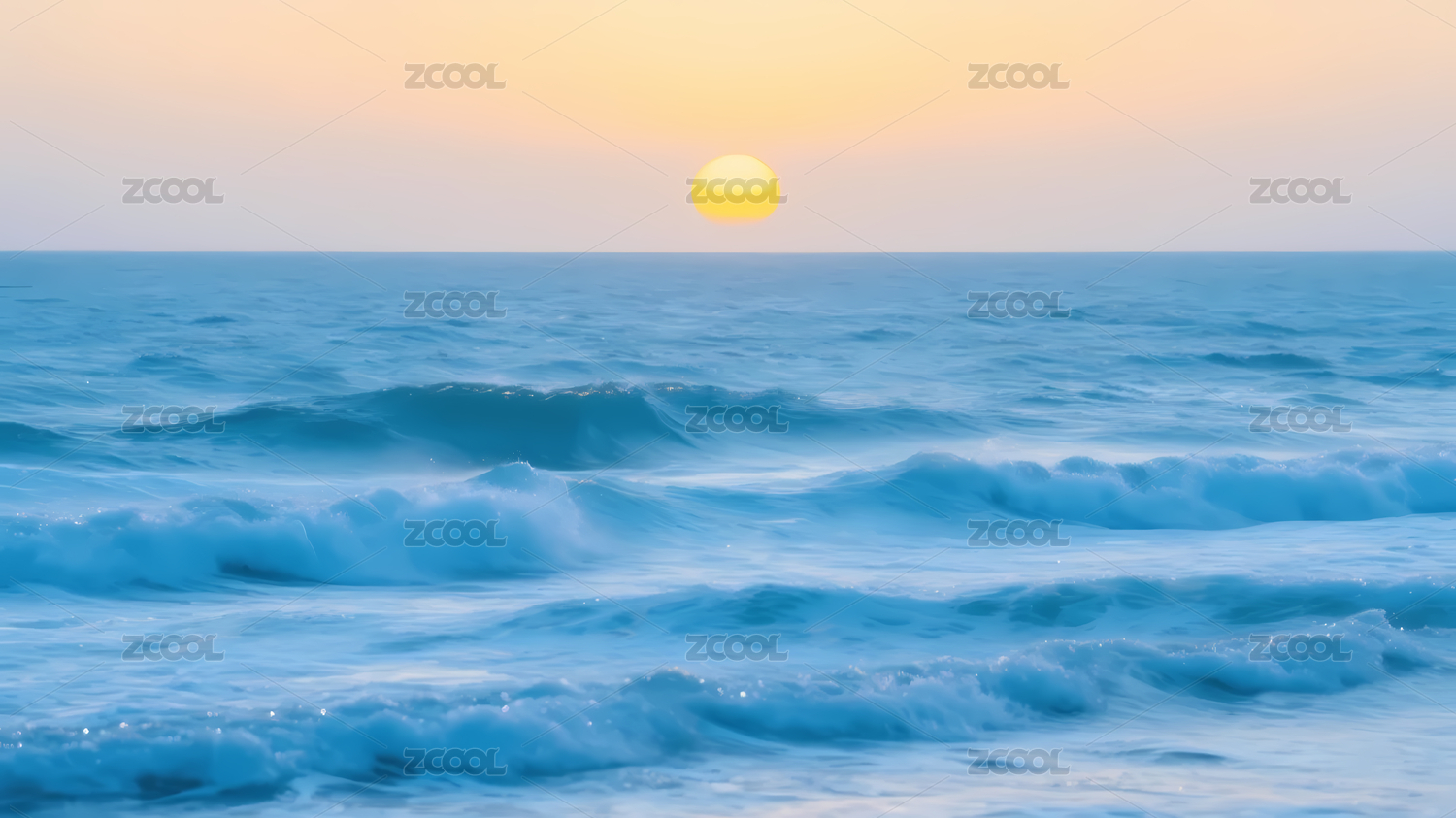 背景,天空,渐变,海面,夕阳,橙黄色,映照,落下,淡紫色,波光粼粼