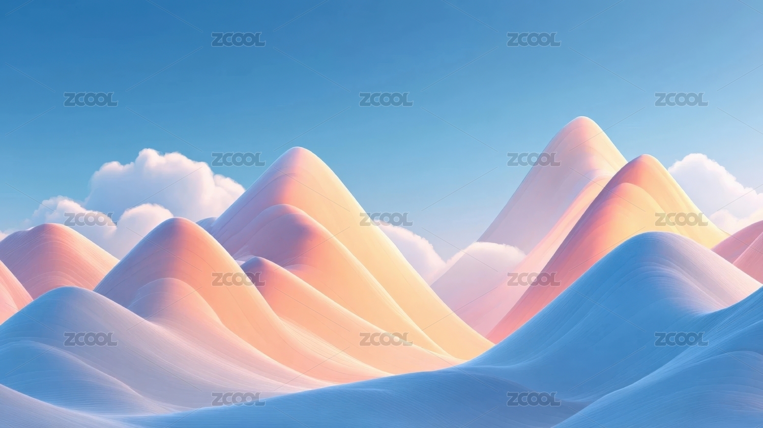 梦幻山峦与柔和云朵