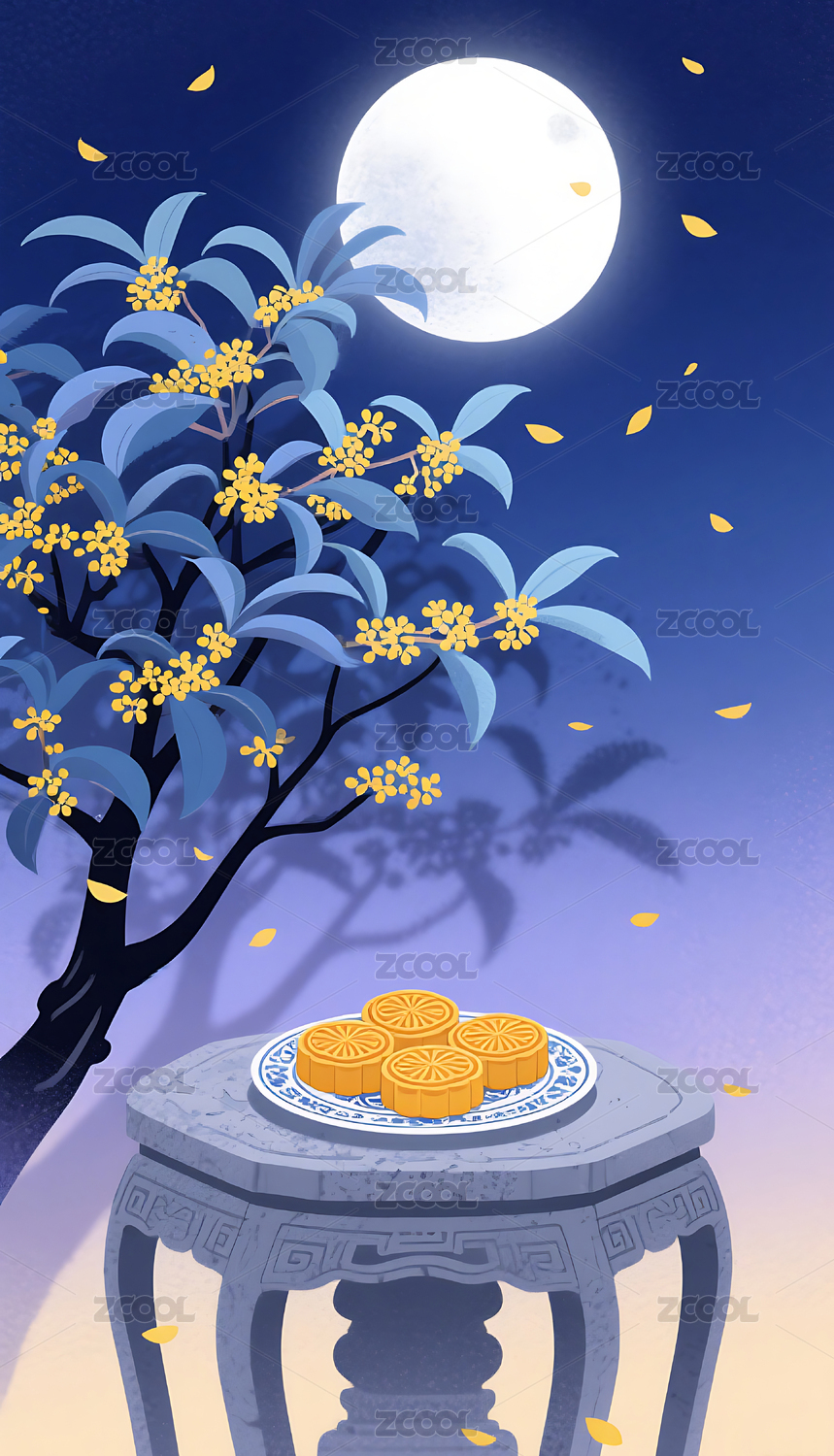 插画,传统,中秋节,节日,月饼,桂花,桂花树