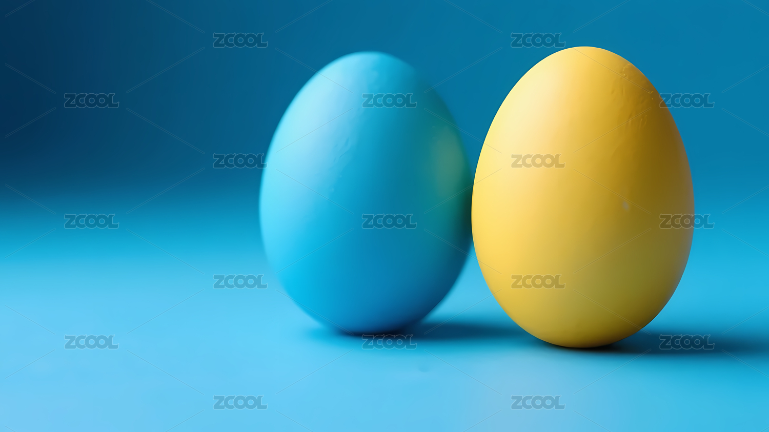 蓝色背景上蓝色鸡蛋的特写高清图片