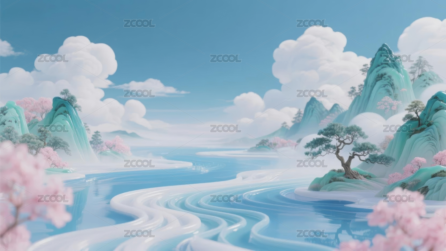 3D春天唯美山川风景