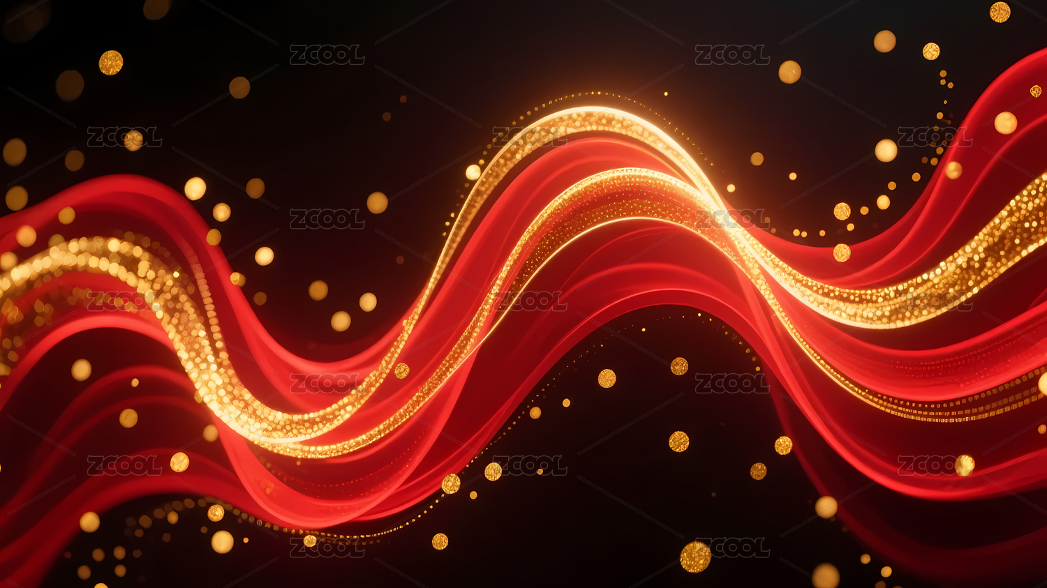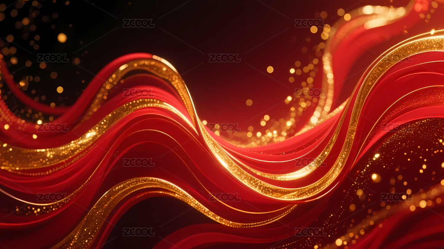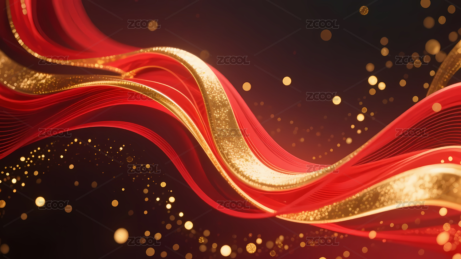 背景,红色,金色,深色,光点,华丽,波浪,视觉,动感,线条