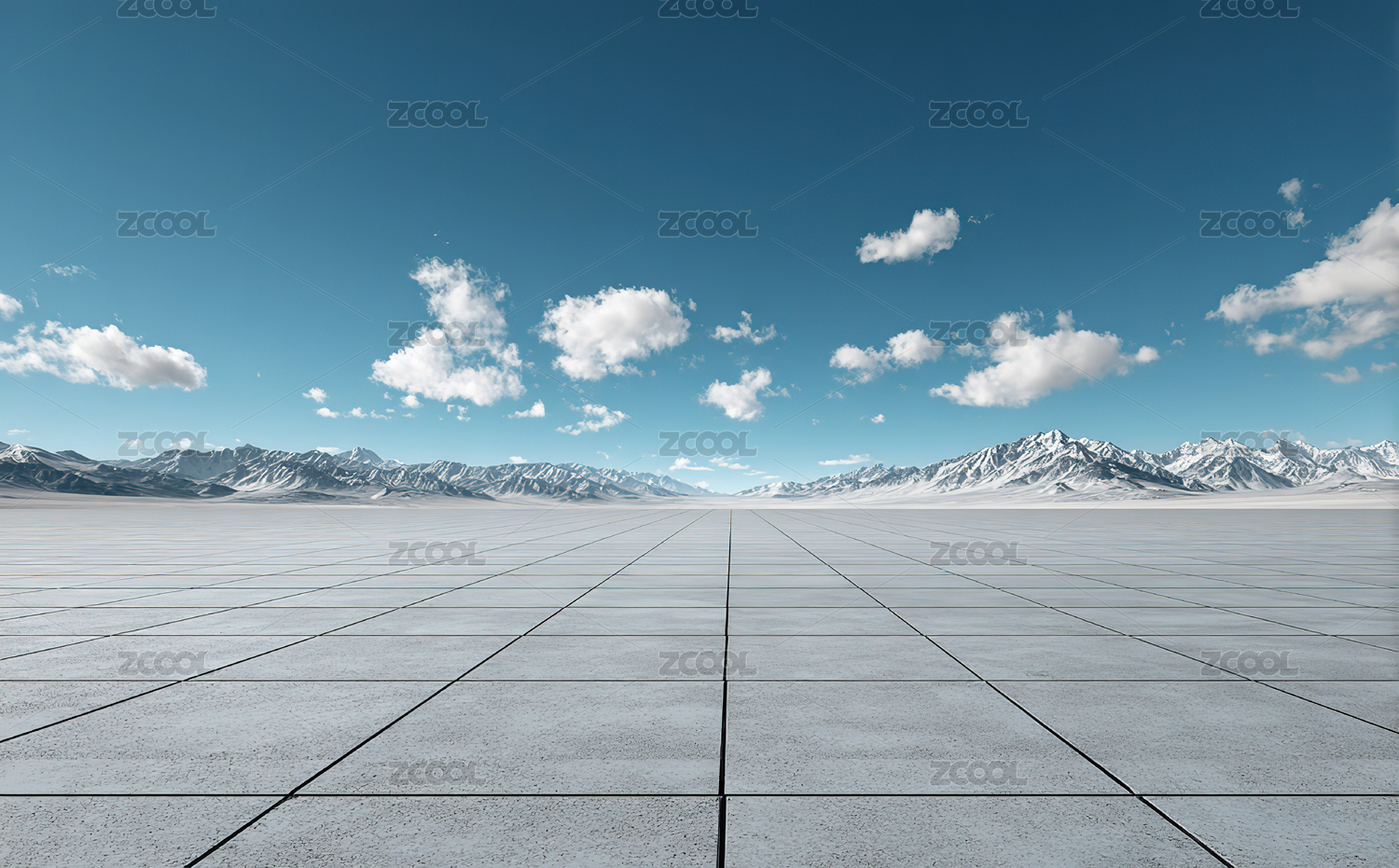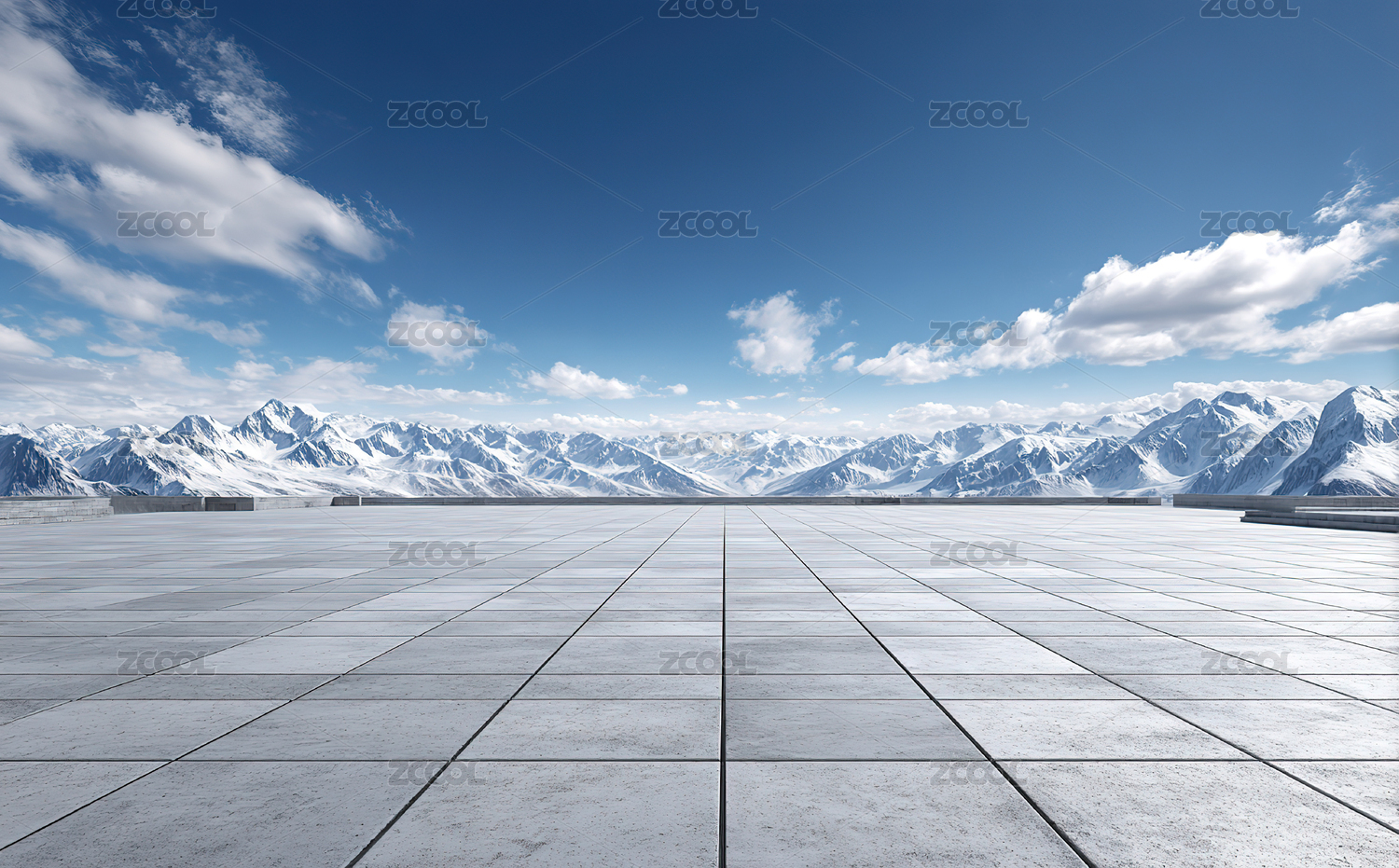 空旷广场与雪山