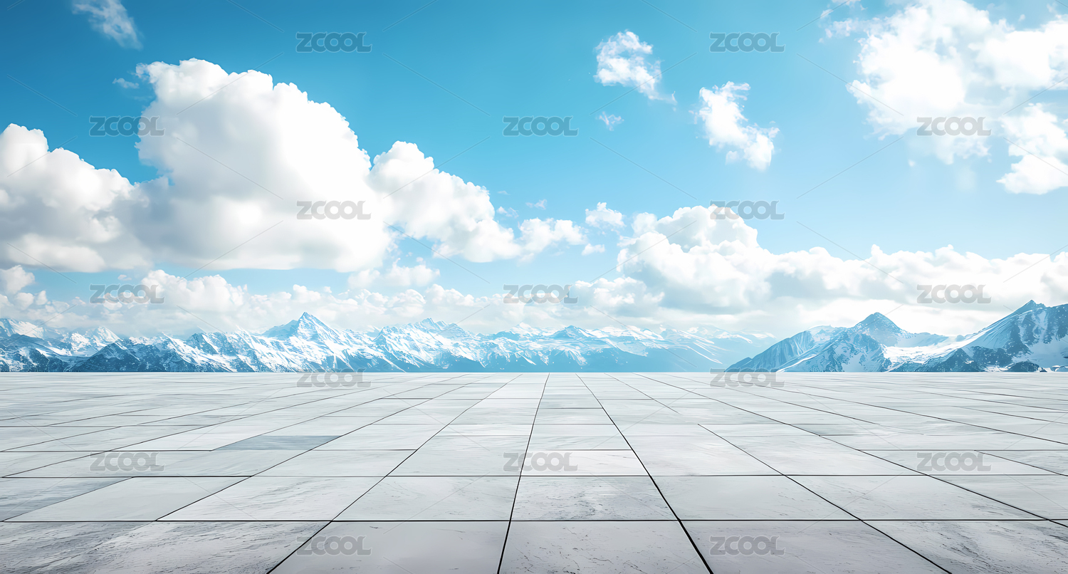 空旷平台与雪山蓝天