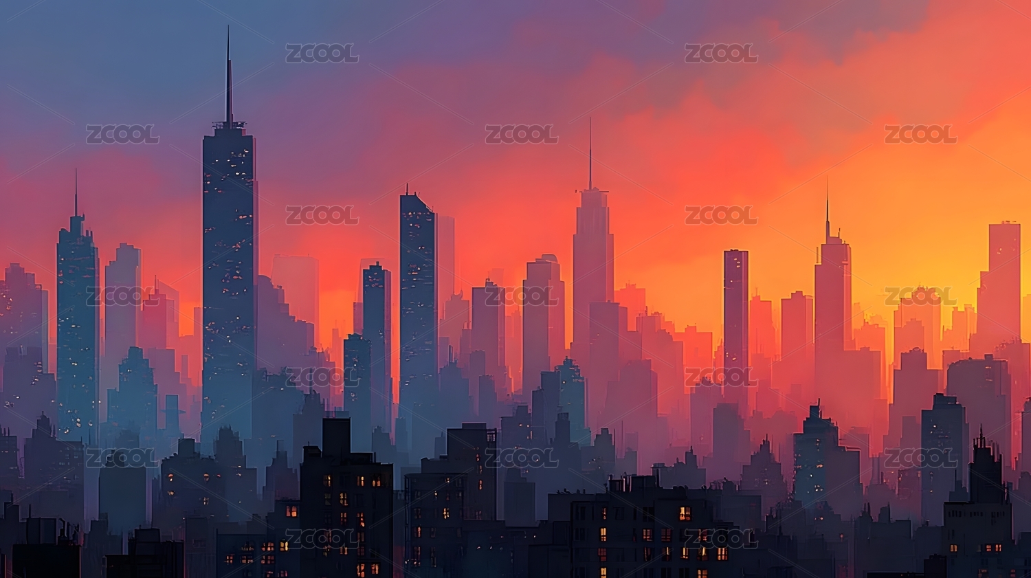 城市,剪影,建筑,高楼,背景,现代,都市,圆形,明亮,环境