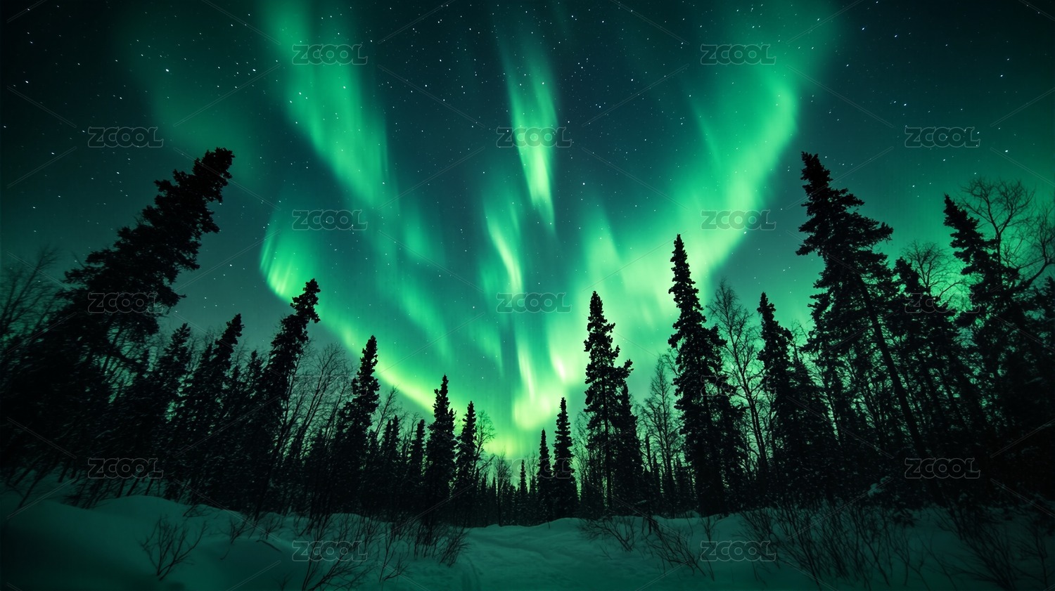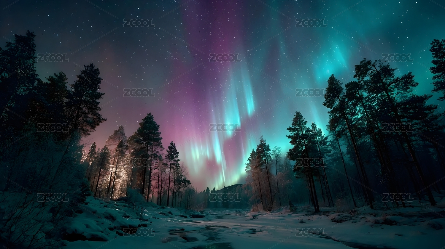 极光森林雪夜奇观