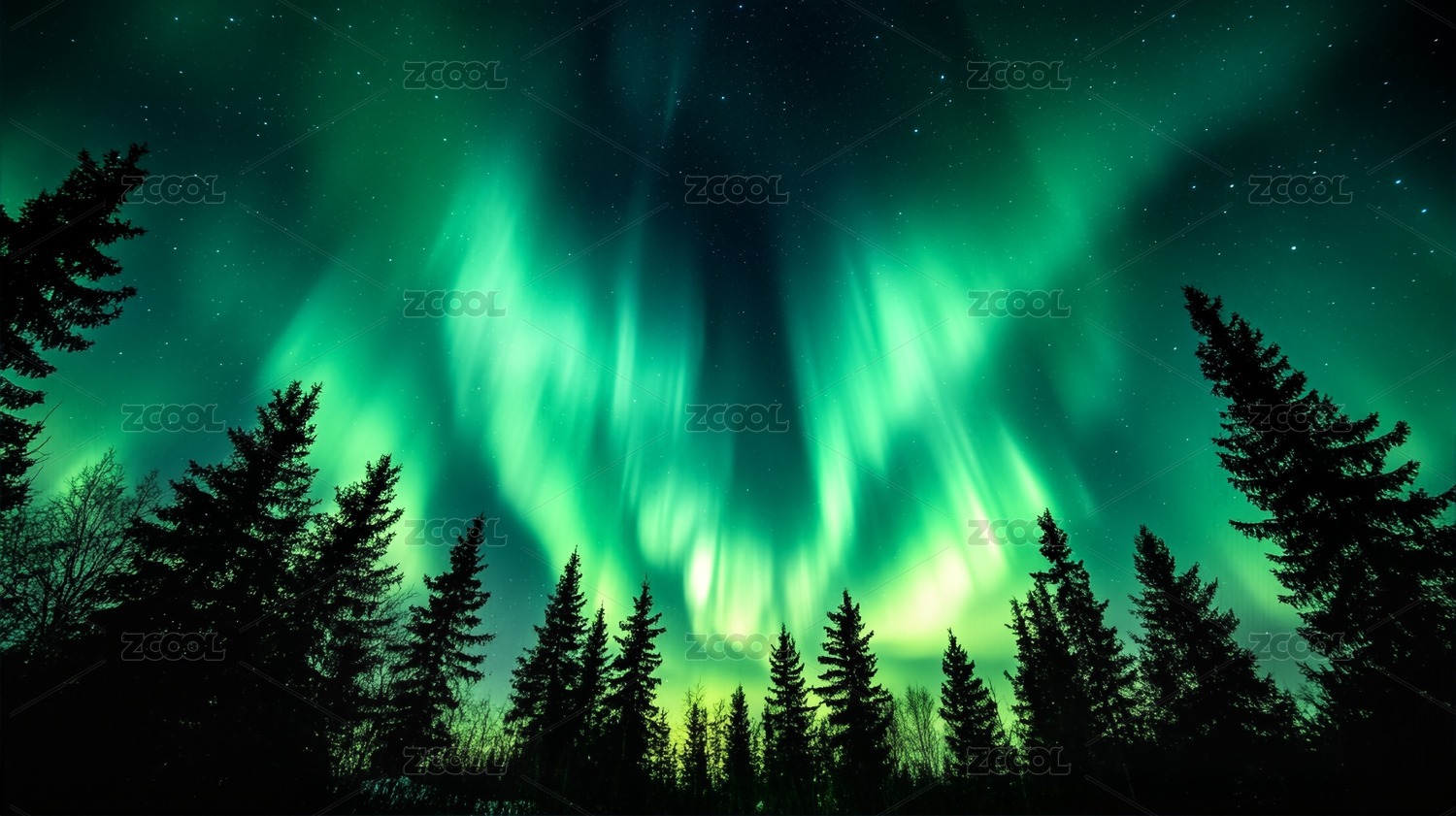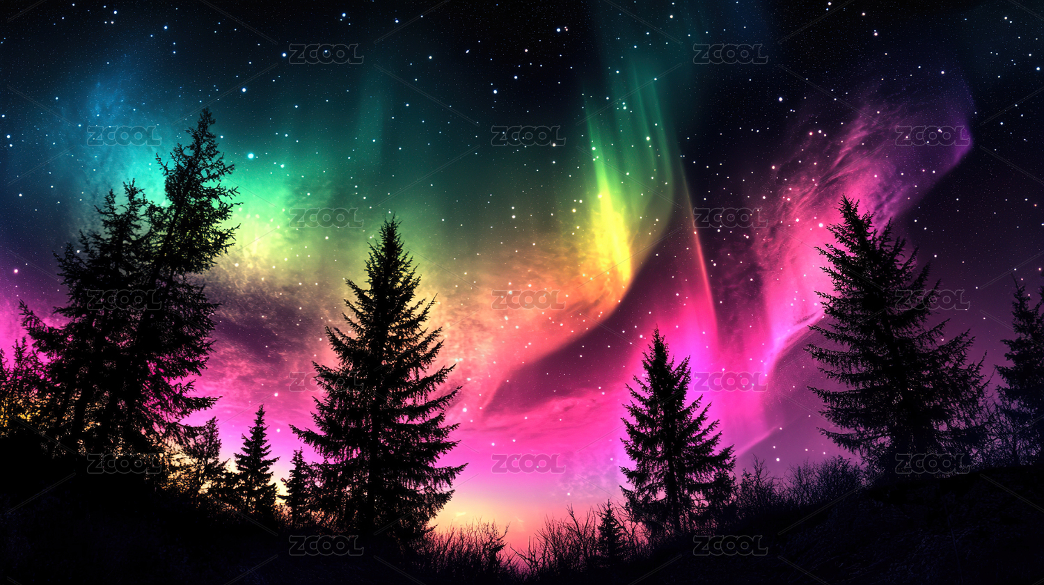 绚丽极光森林夜空