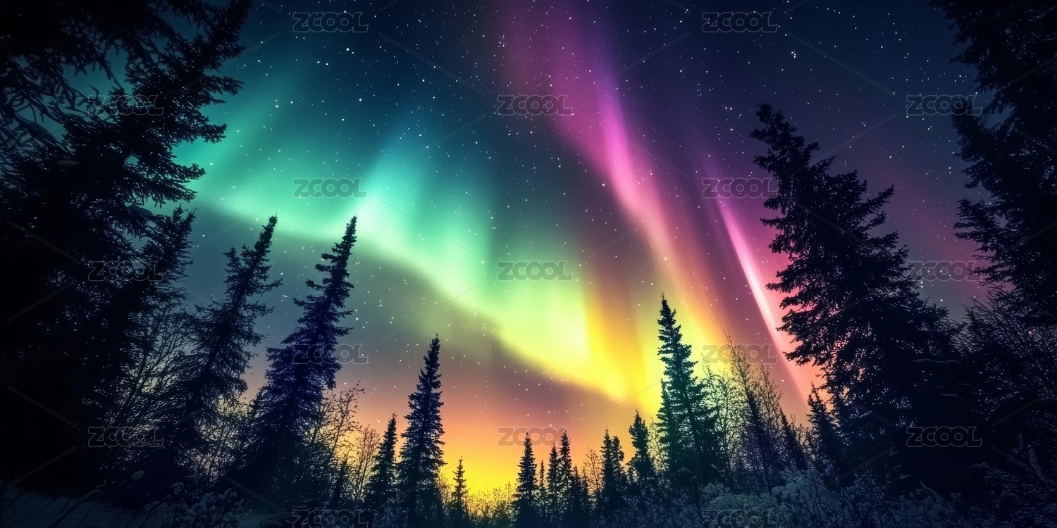 极光下的神秘森林