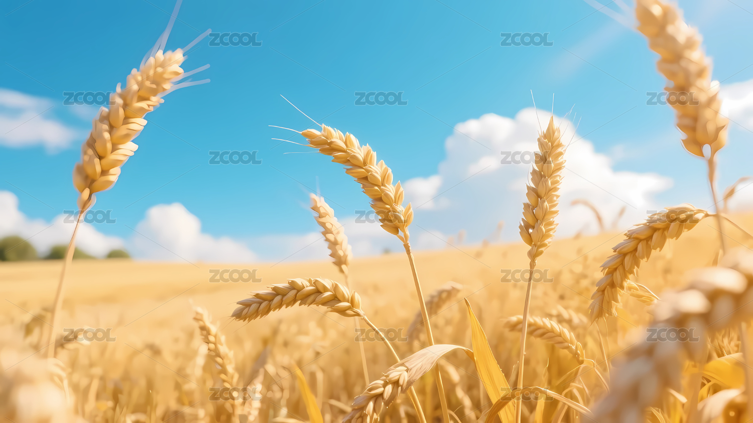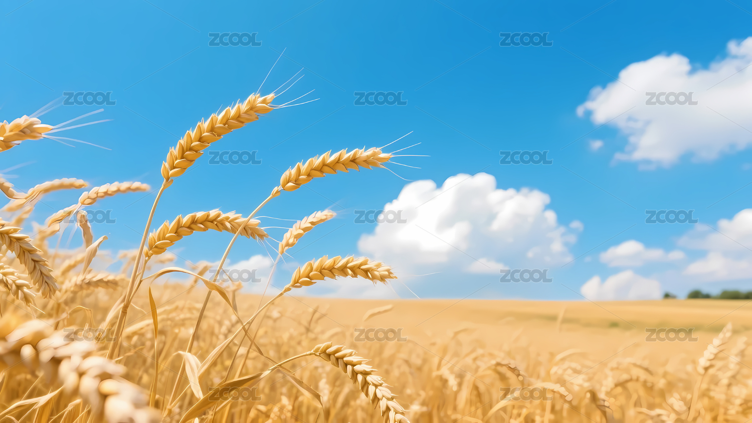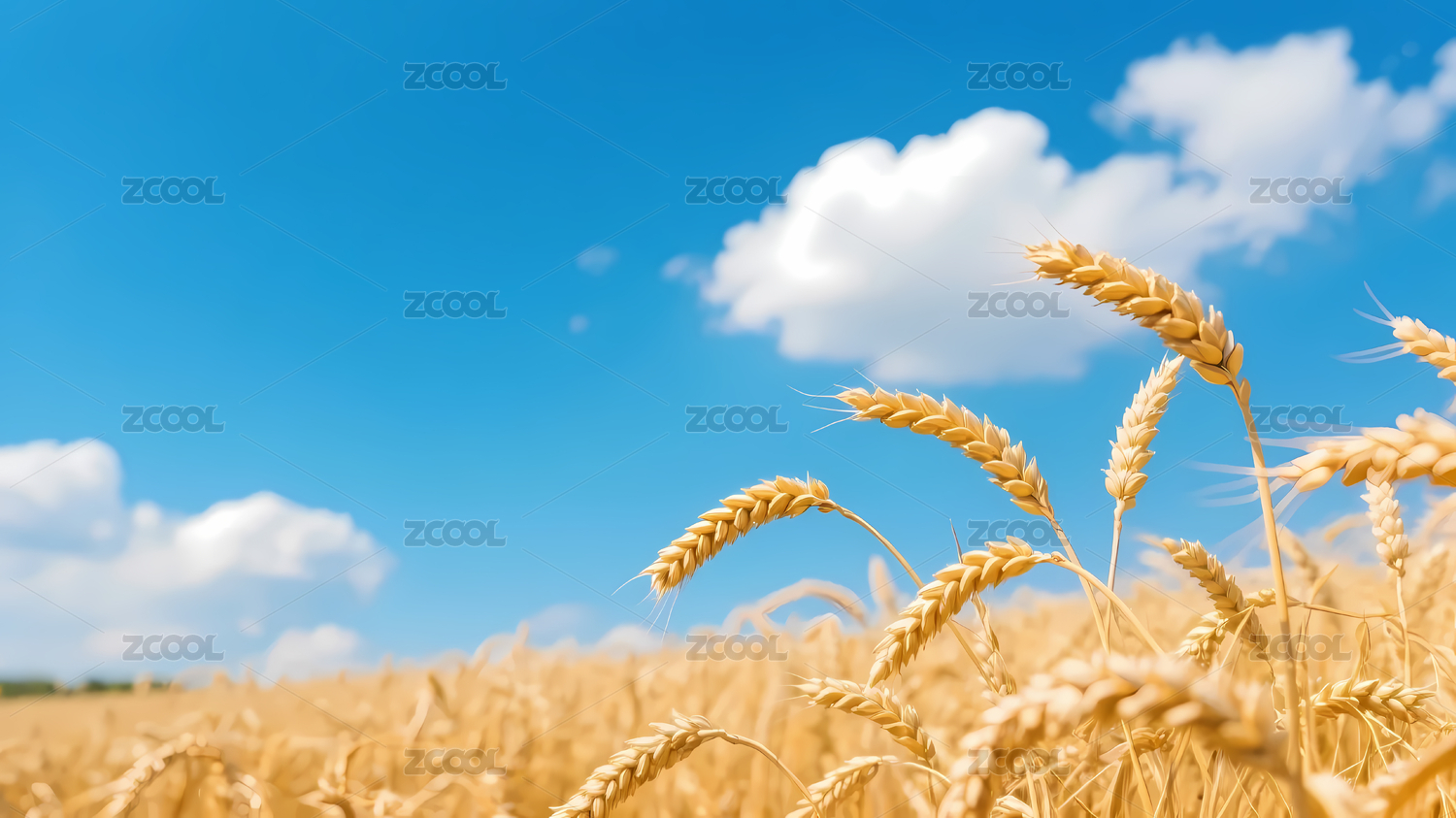 金黄麦田与蓝天白云