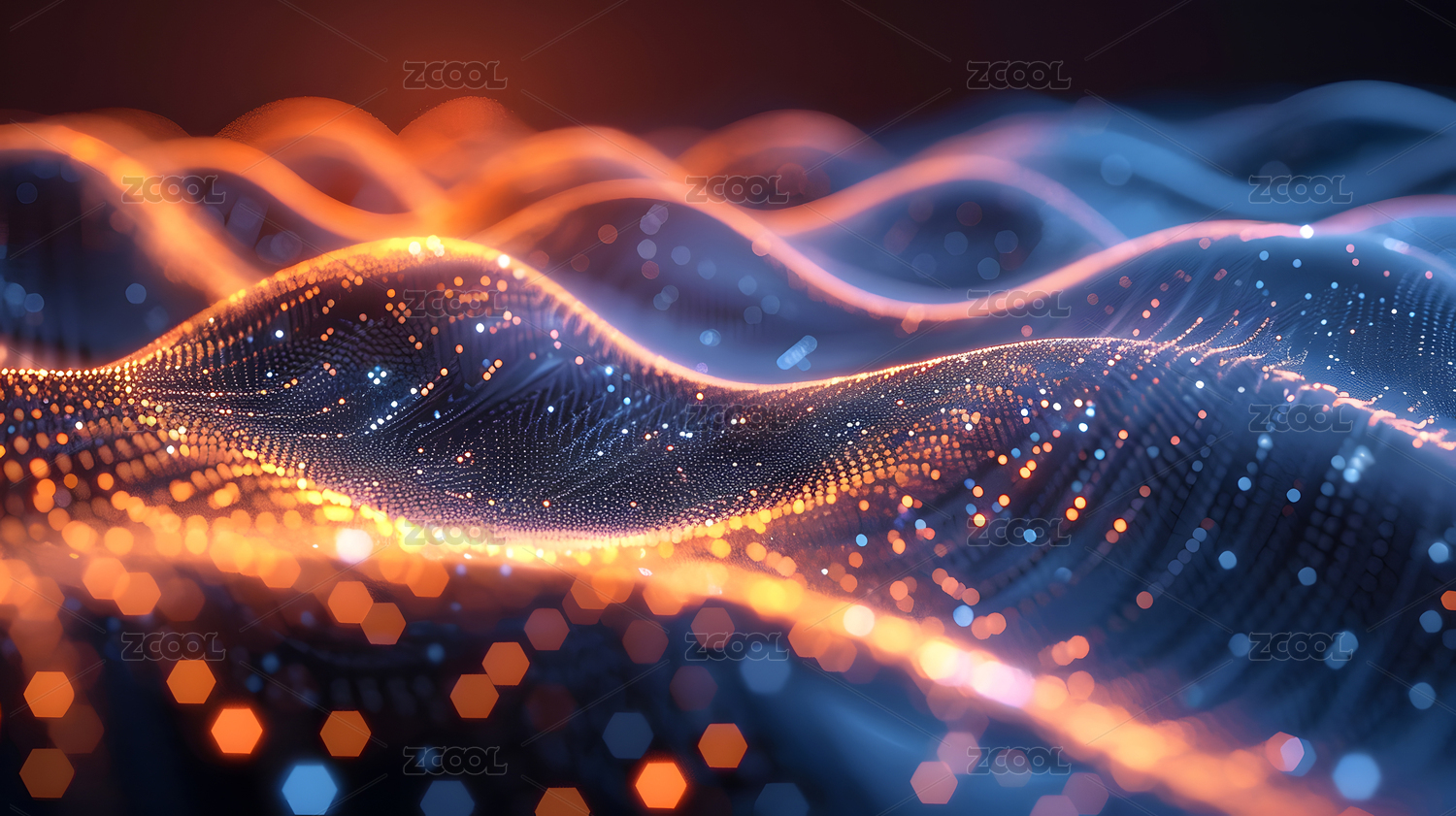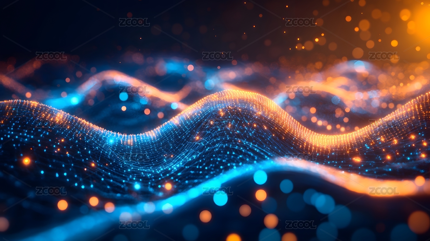 蓝橙粒子波纹深蓝背景
