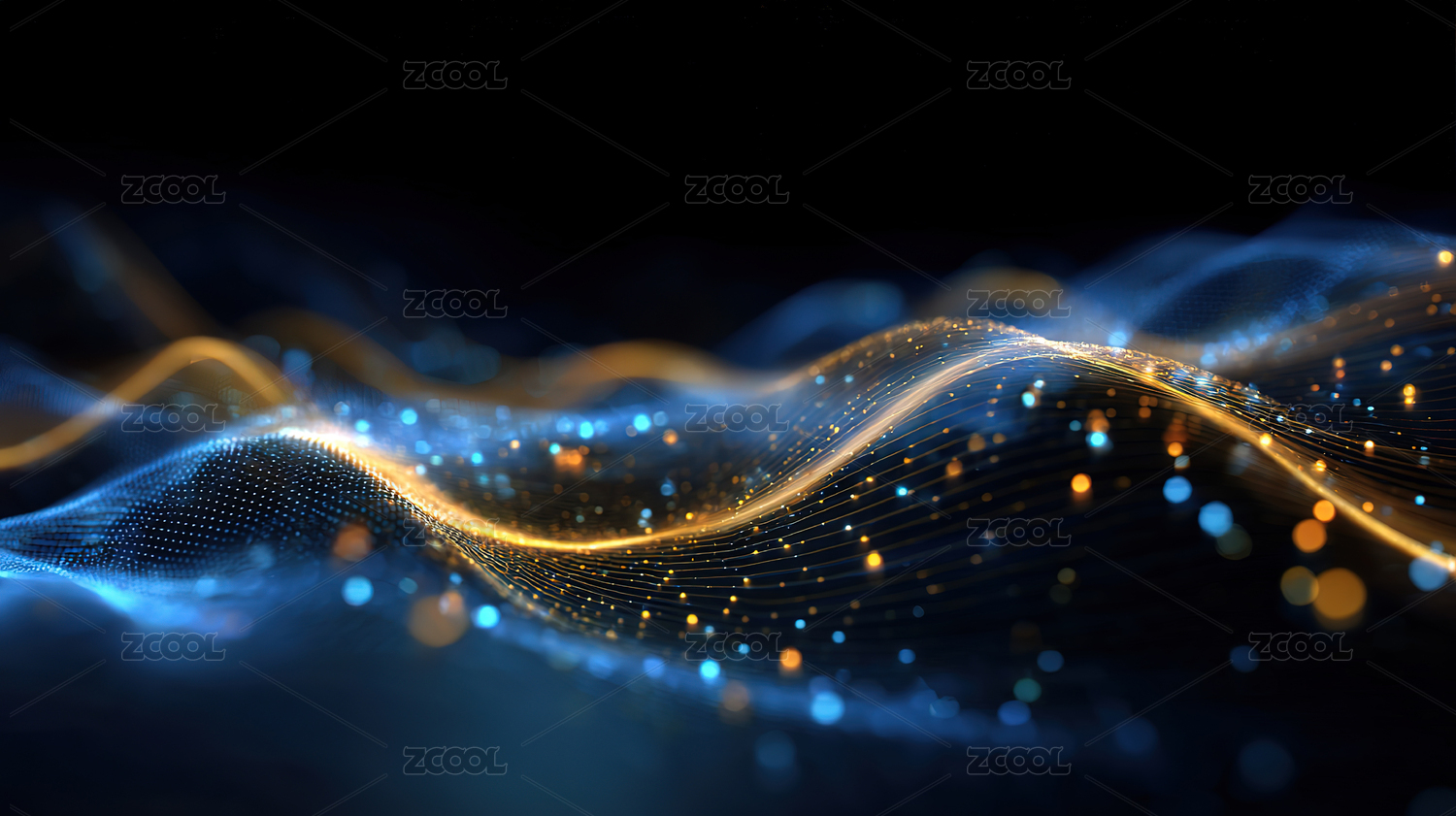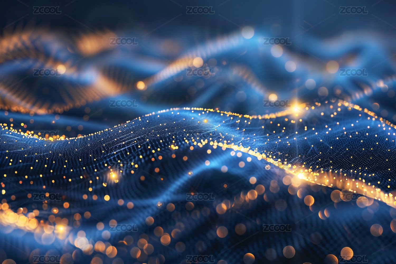 蓝色波浪金色粒子