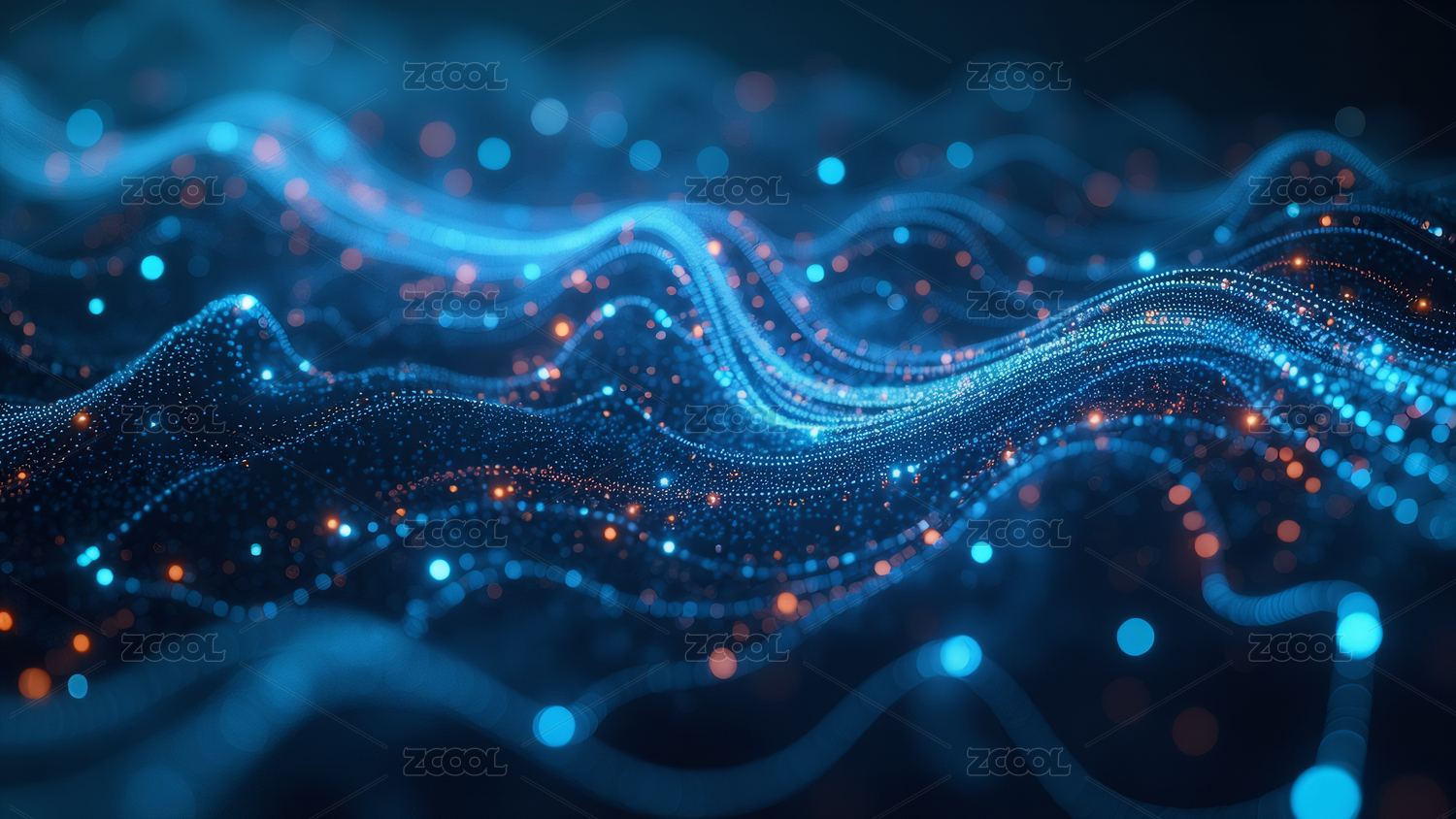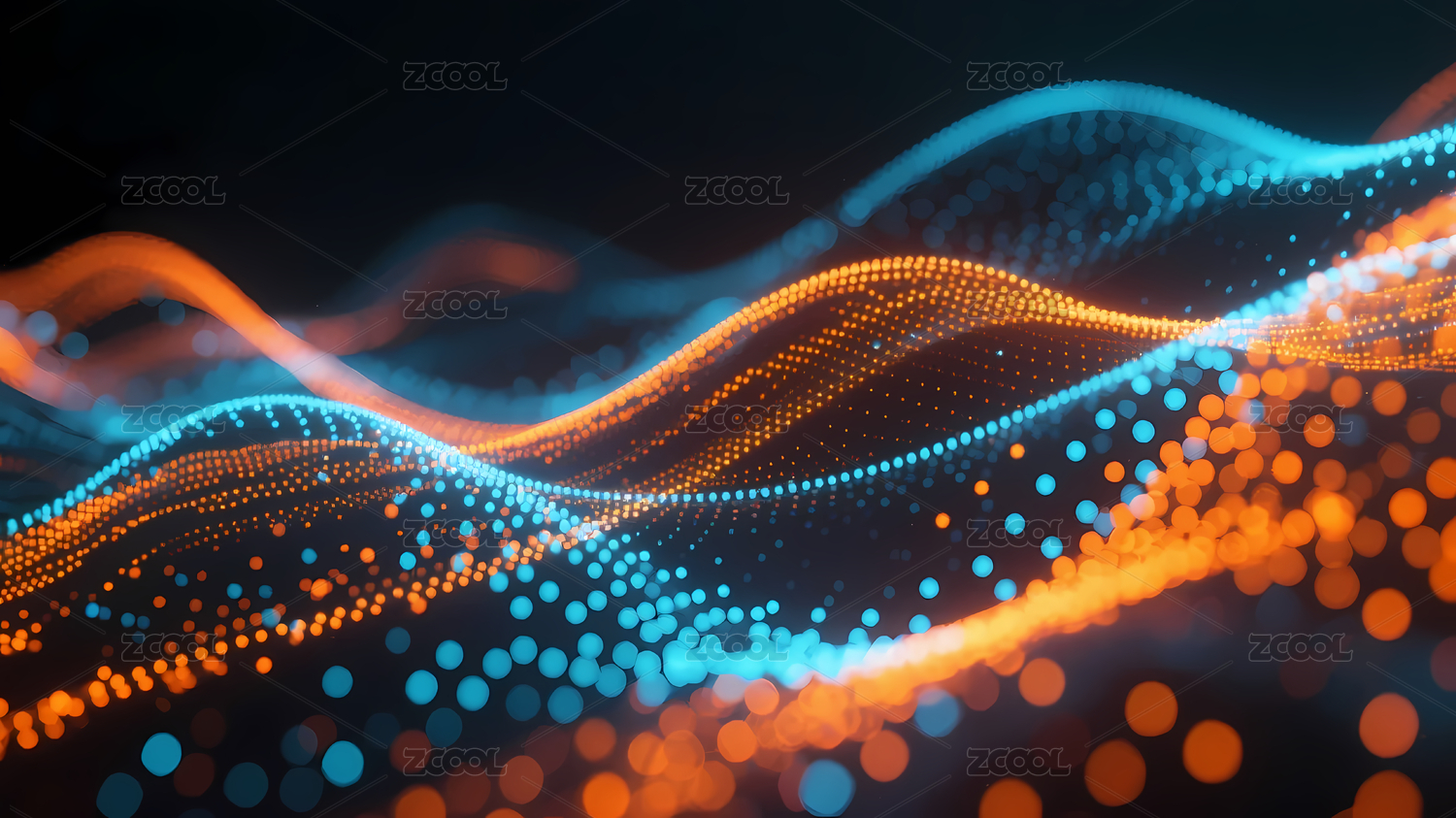 蓝橙光点波浪线条