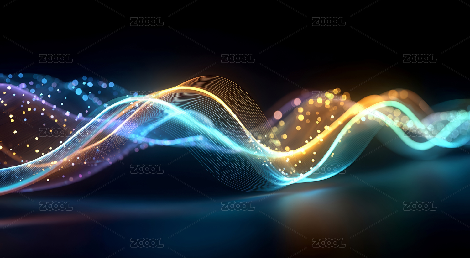 蓝金波浪粒子线条
