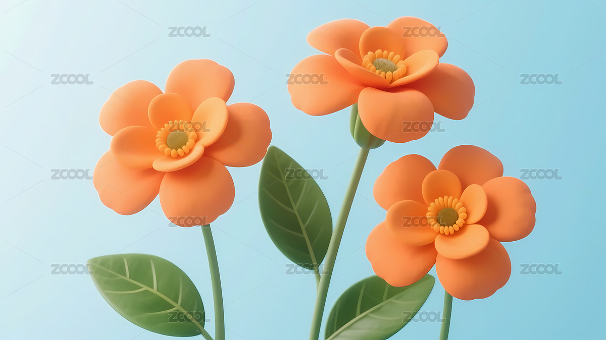 橙色花朵绿色叶子