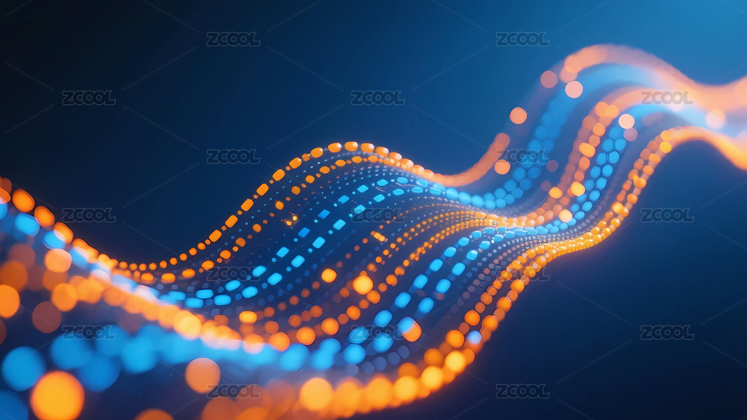 波浪,蓝色,橙色,背景,深蓝色,动态,线条,点状,光斑,模糊
