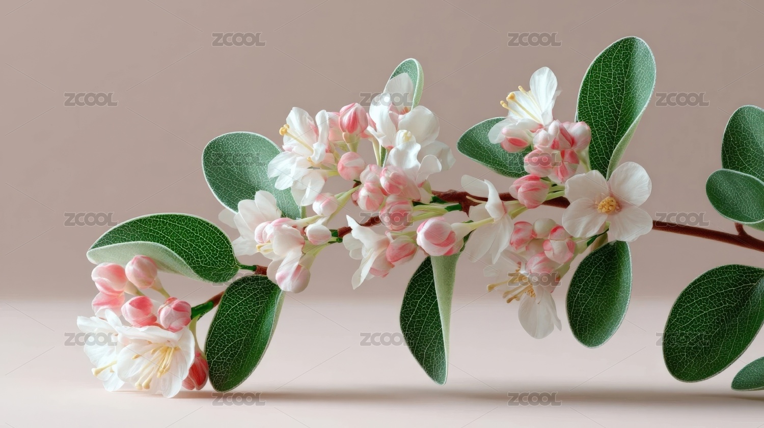 粉色桃花枝条绽放 浅蓝背景浪漫