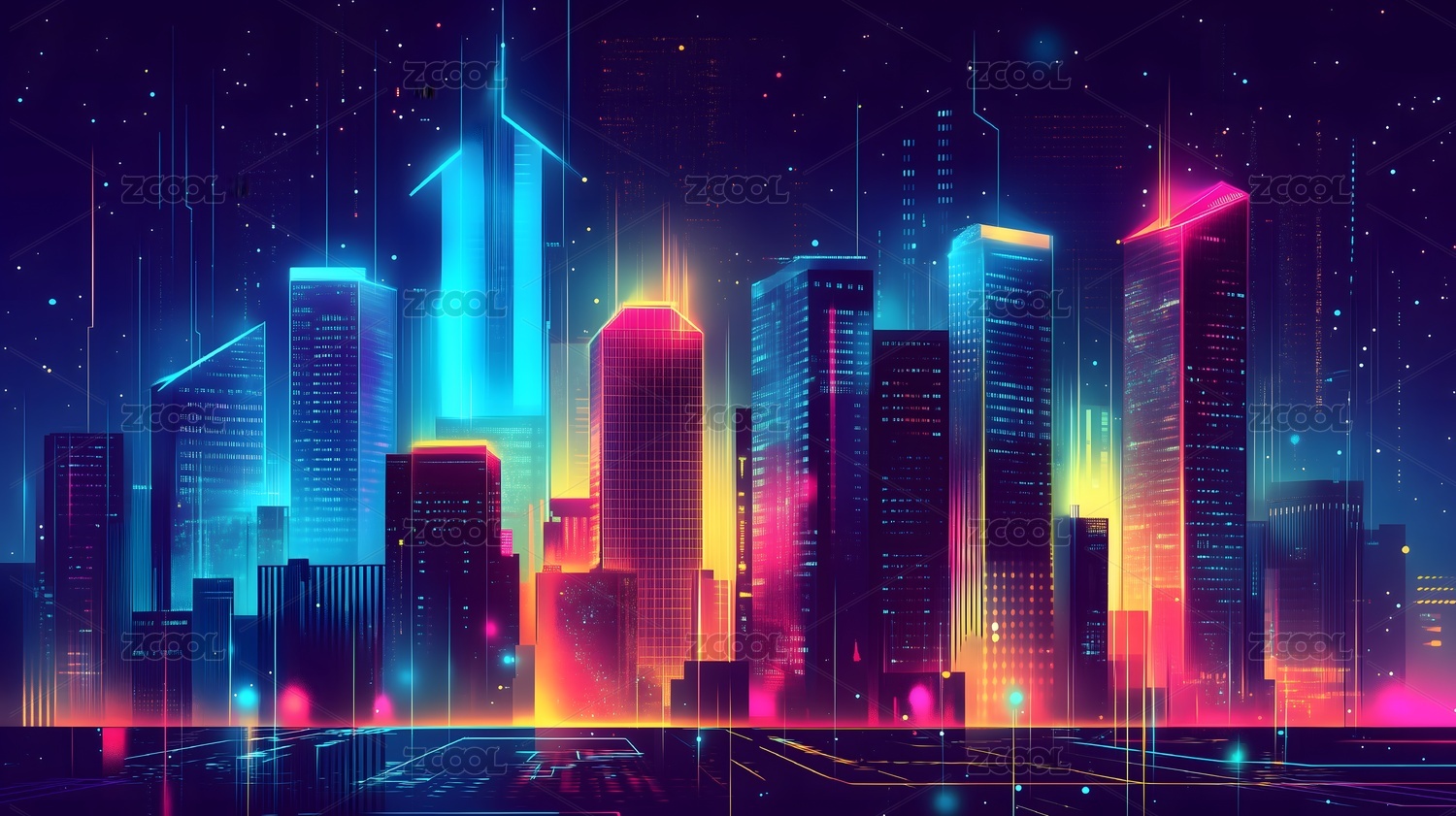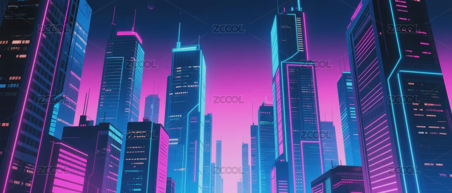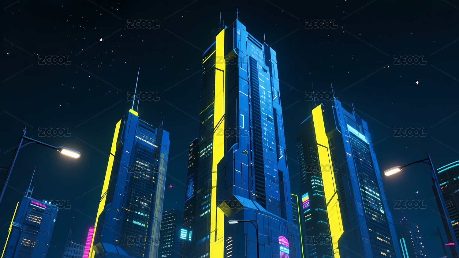 紫色,蓝色,霓虹灯,深色,氛围,科技,未来,夜空,高楼,建筑