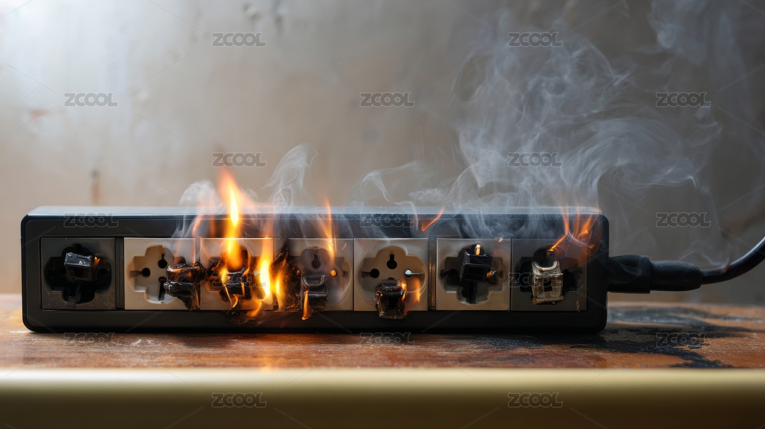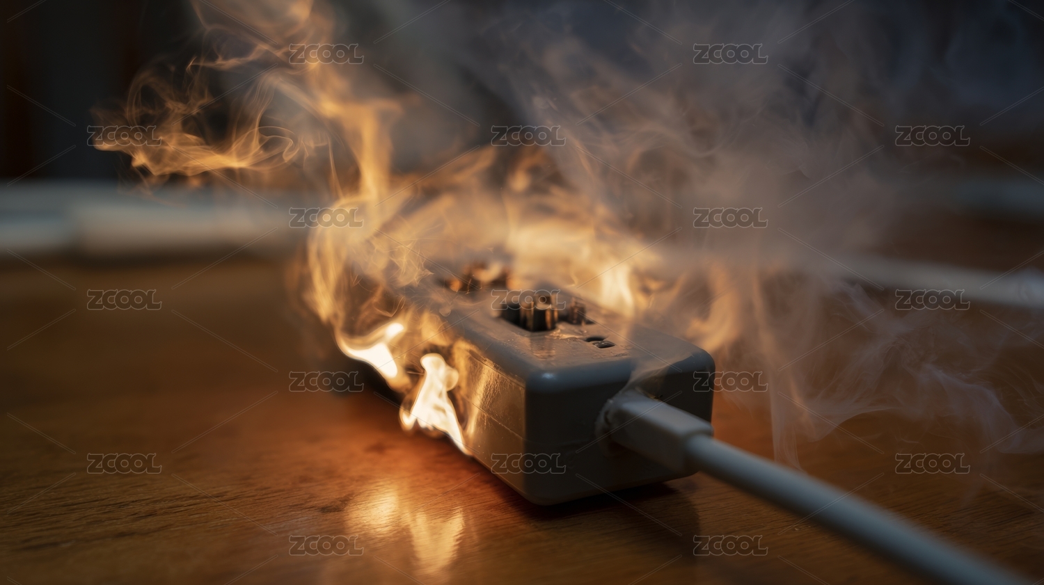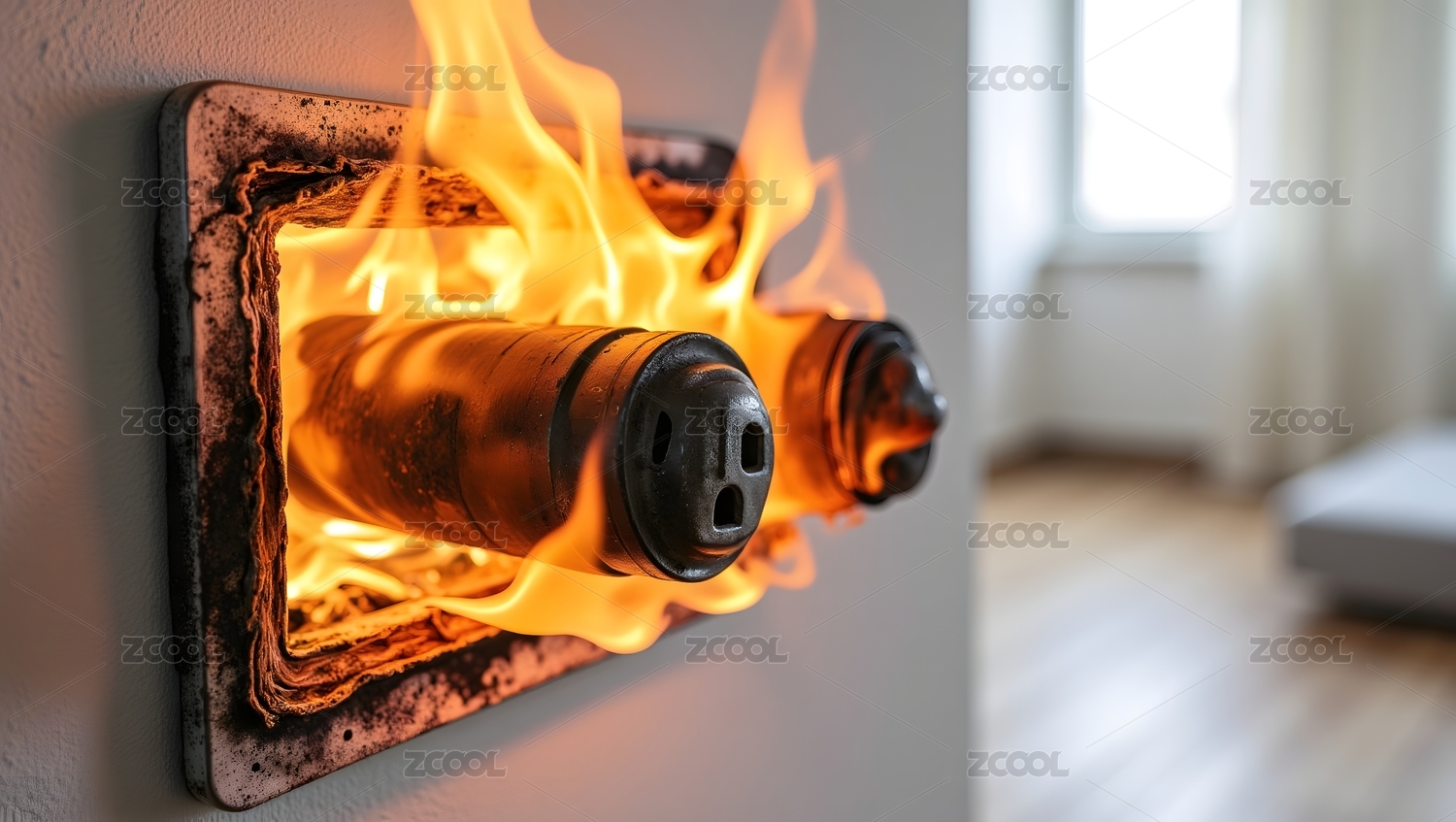 插座起火燃烧危险场景
