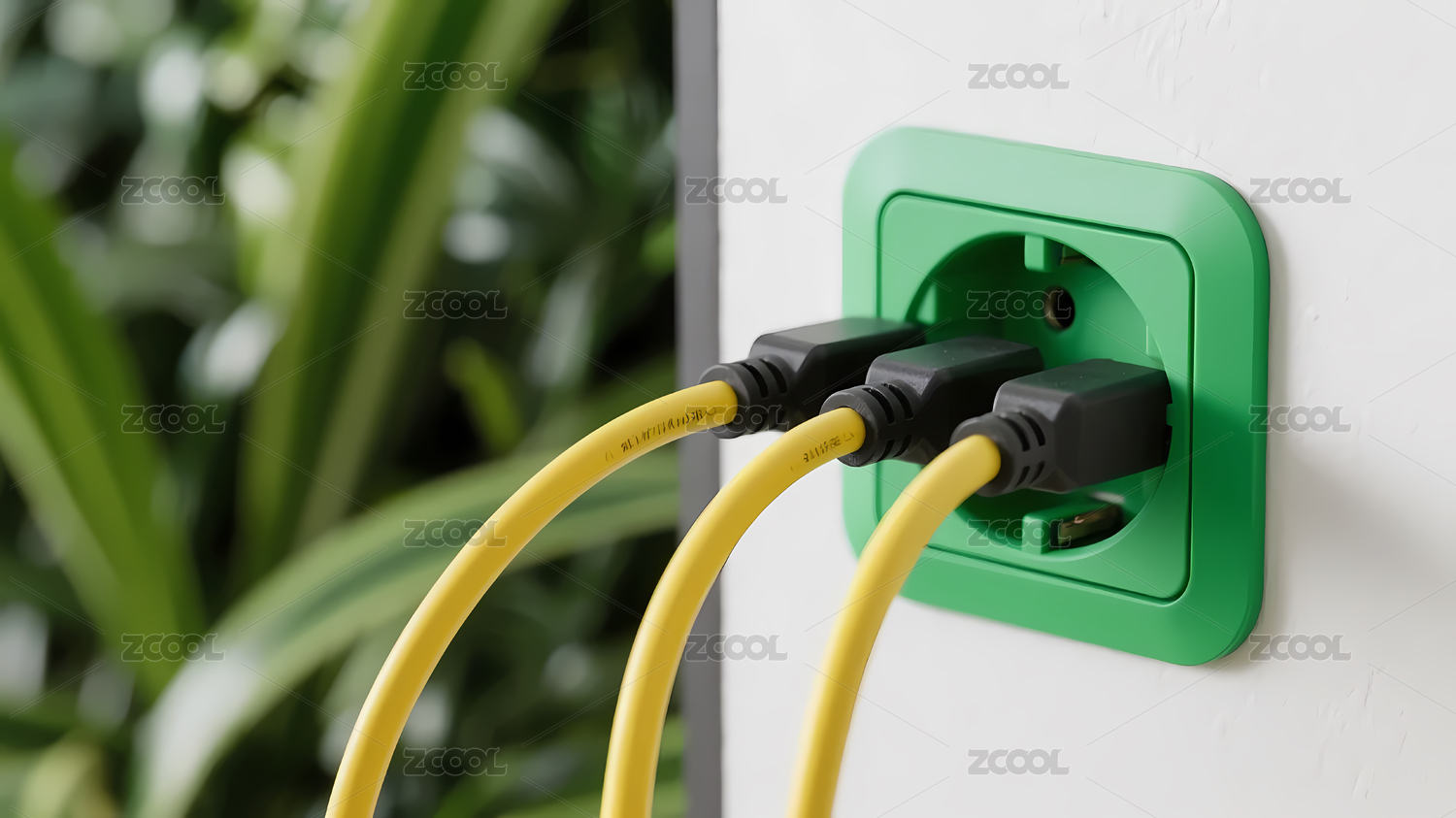 墙上的绿色插座与电线