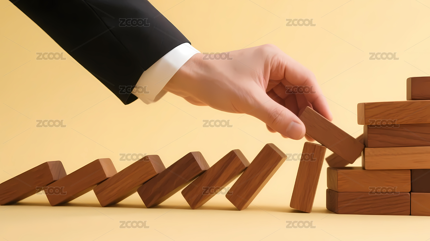 背景,黄色,手,西装,木制,积木,排列,推动,单一,整齐