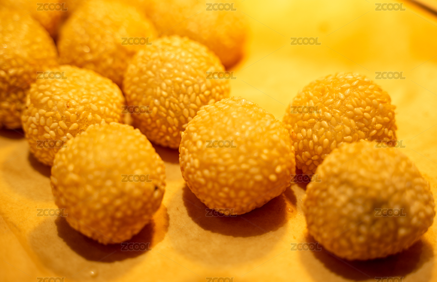 散落的传统点心芝麻团芋头酥特写