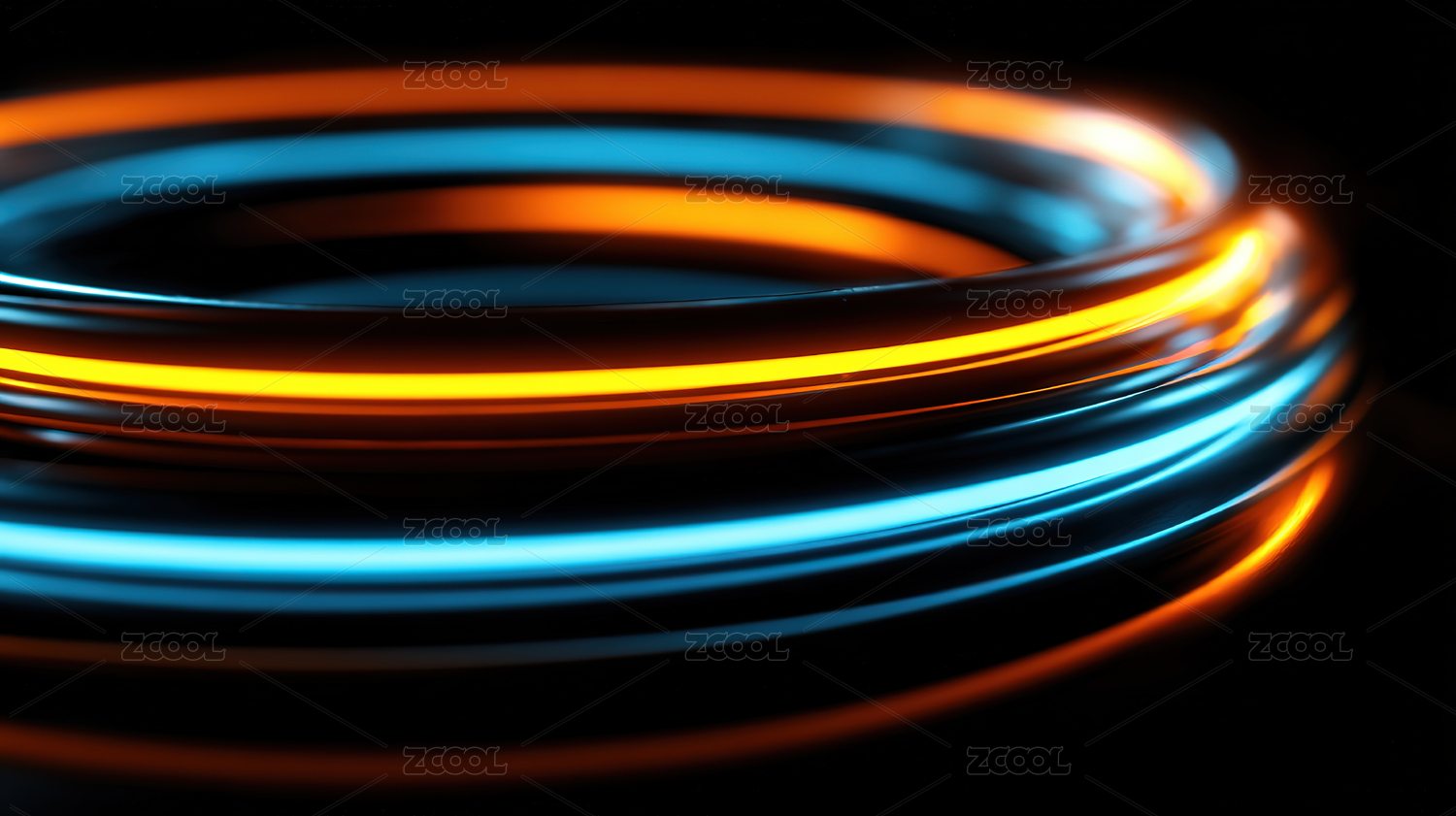 蓝色,橙色,背景,霓虹灯,深色,视觉,发光,光点,环,对比
