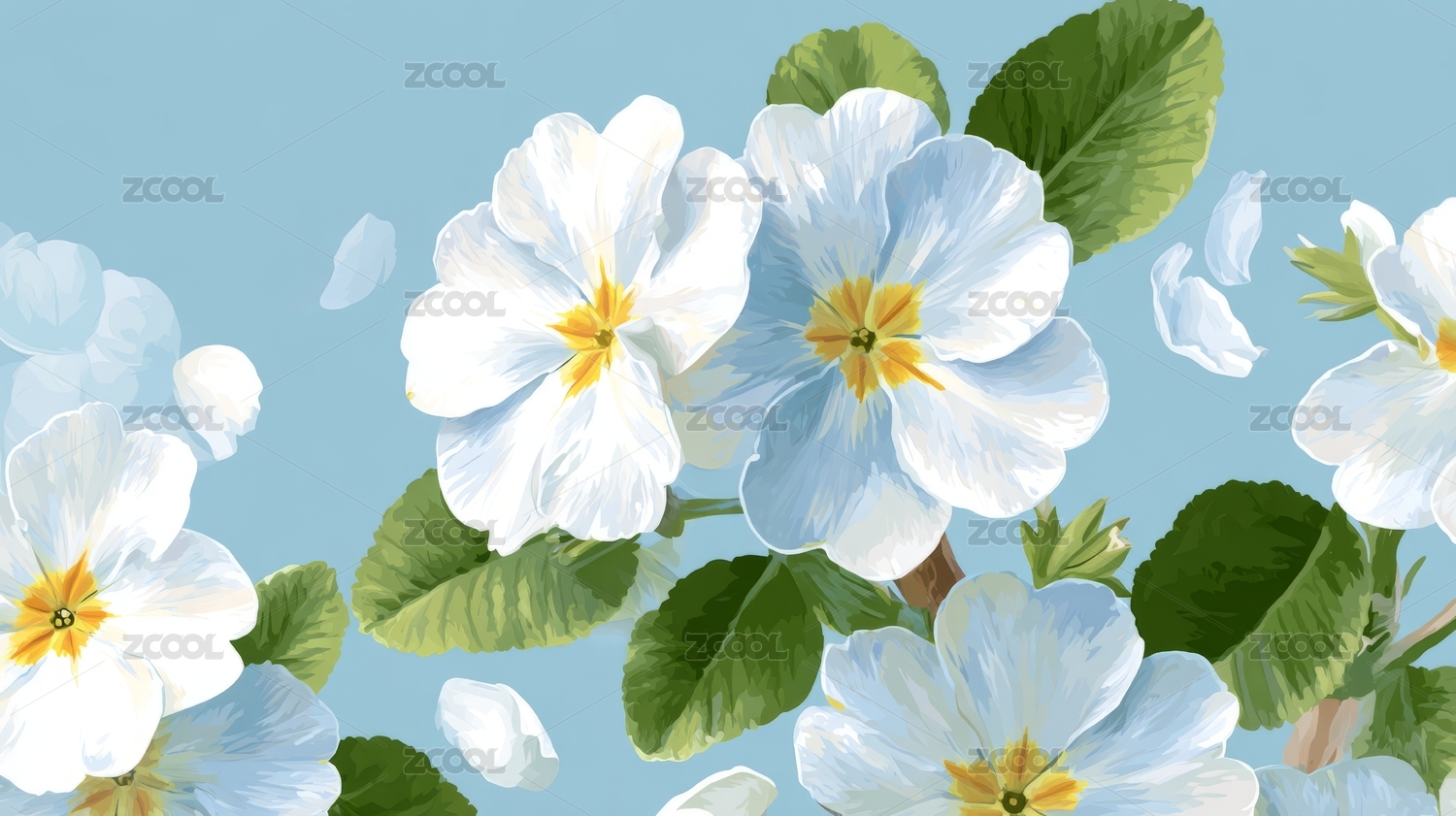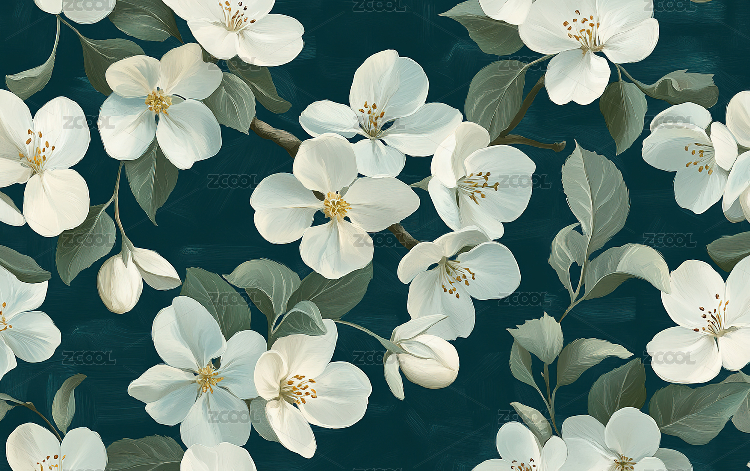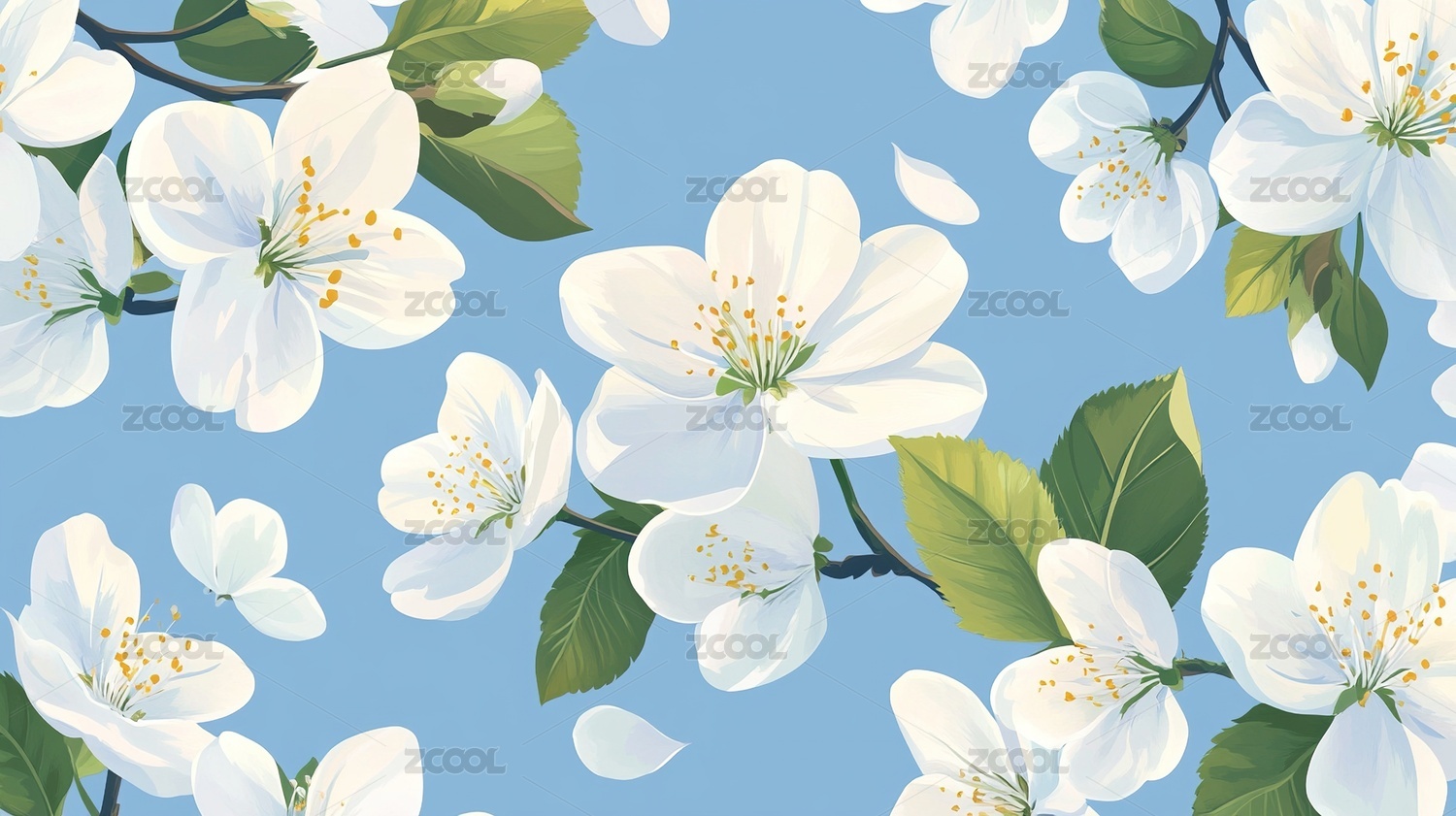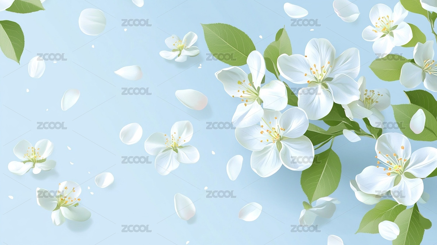 白花,绿叶,花卉,插画,艺术,设计,清新,自然,优雅,柔美