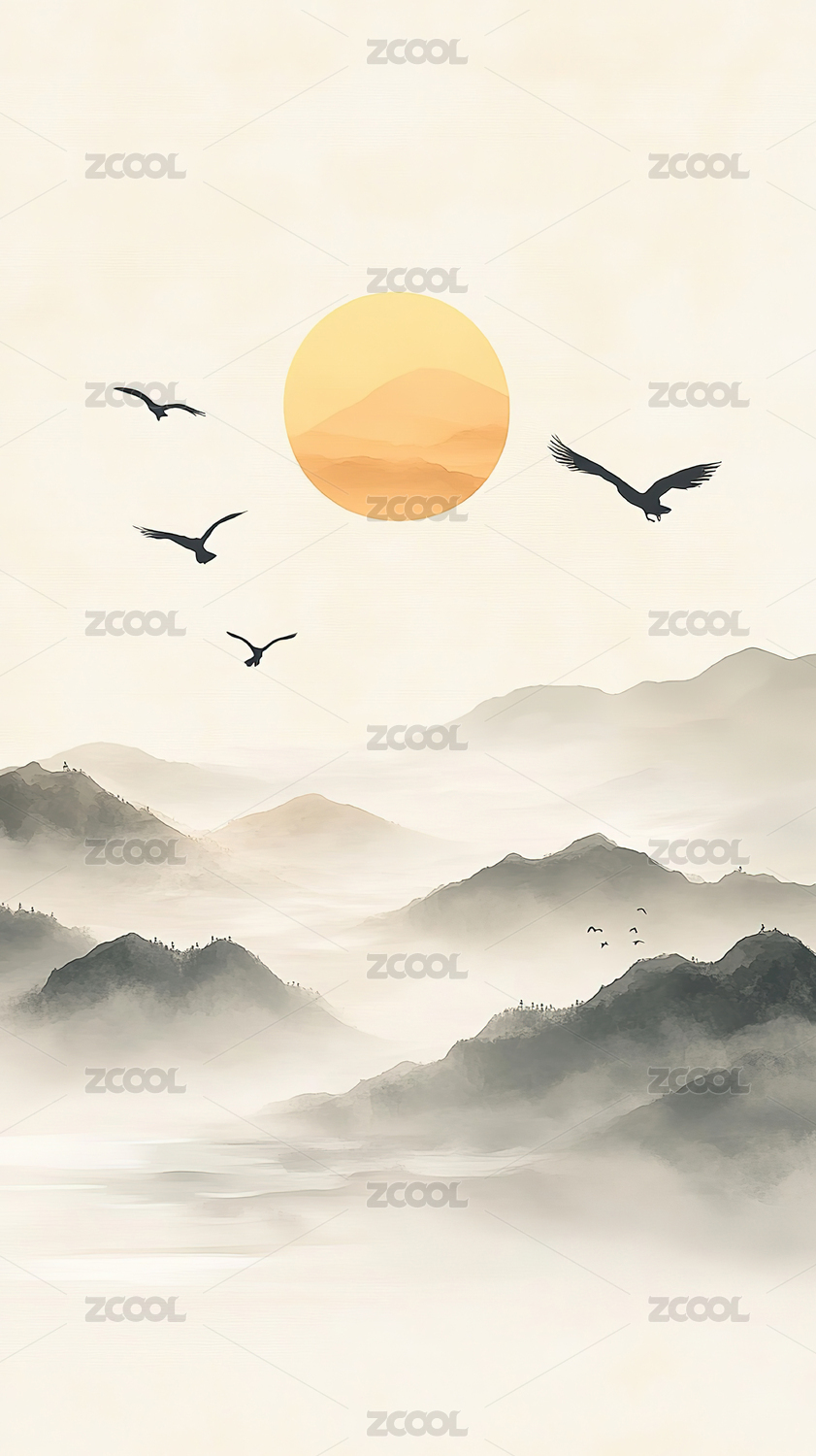 飞鸟翱翔山间日出