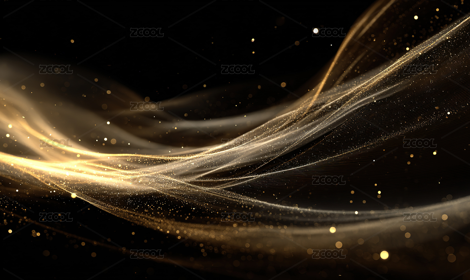 金色光流在黑暗中划出流动轨迹的抽象艺术画