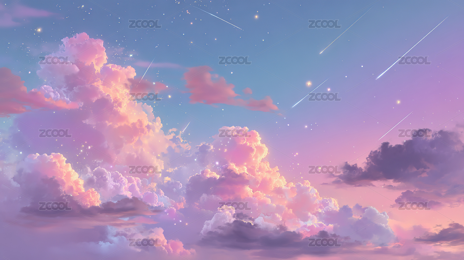 流星紫粉渐变梦幻夜空