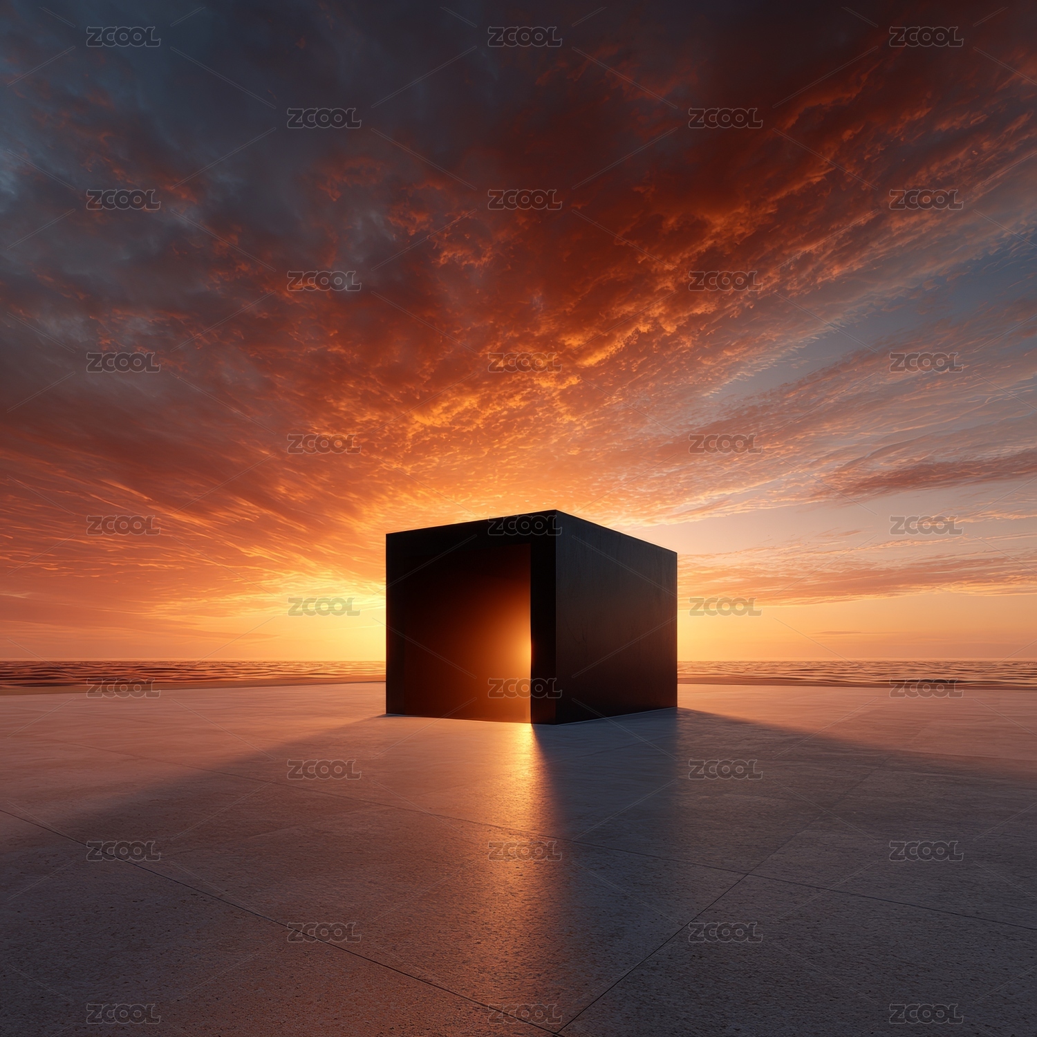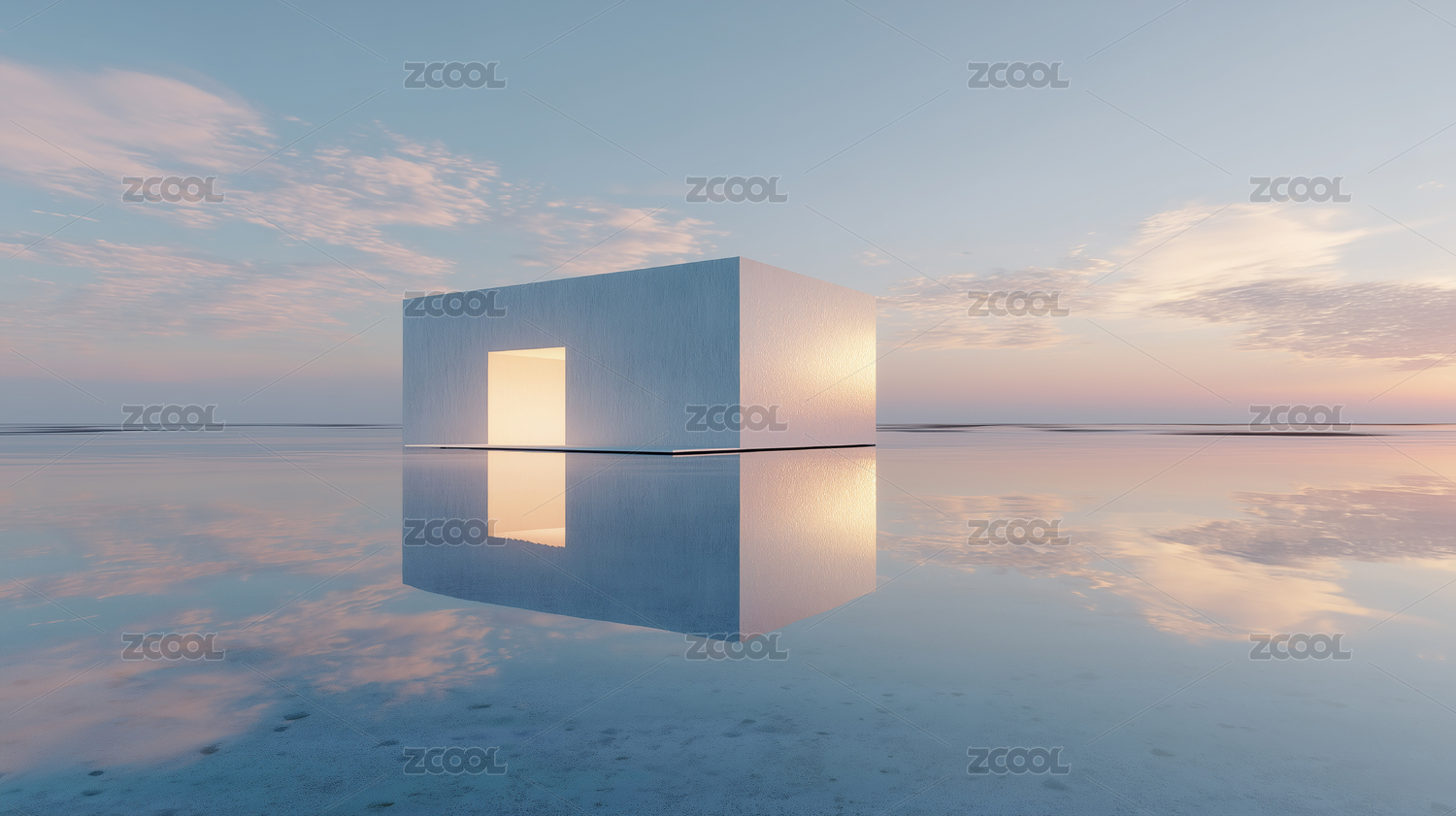海滨,建筑,白色,混凝土,地板,镜面,海洋,地平线,天空,日出