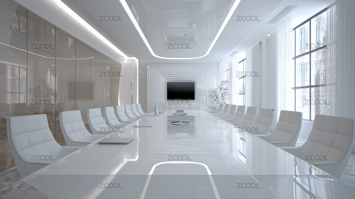 商务,会议,室内,光面,白椅,流线,灯光,建筑,现代,极简