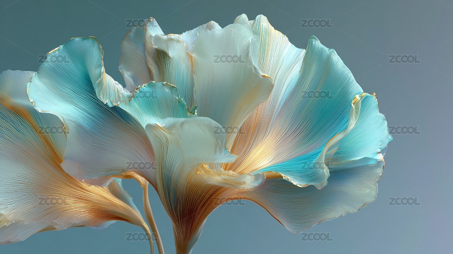 花朵,3D,抽象,数字,花瓣,边缘,渐变,青色,金色,阴影