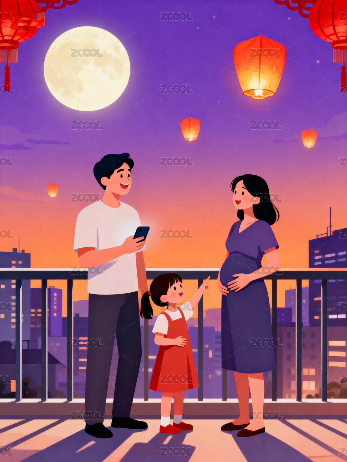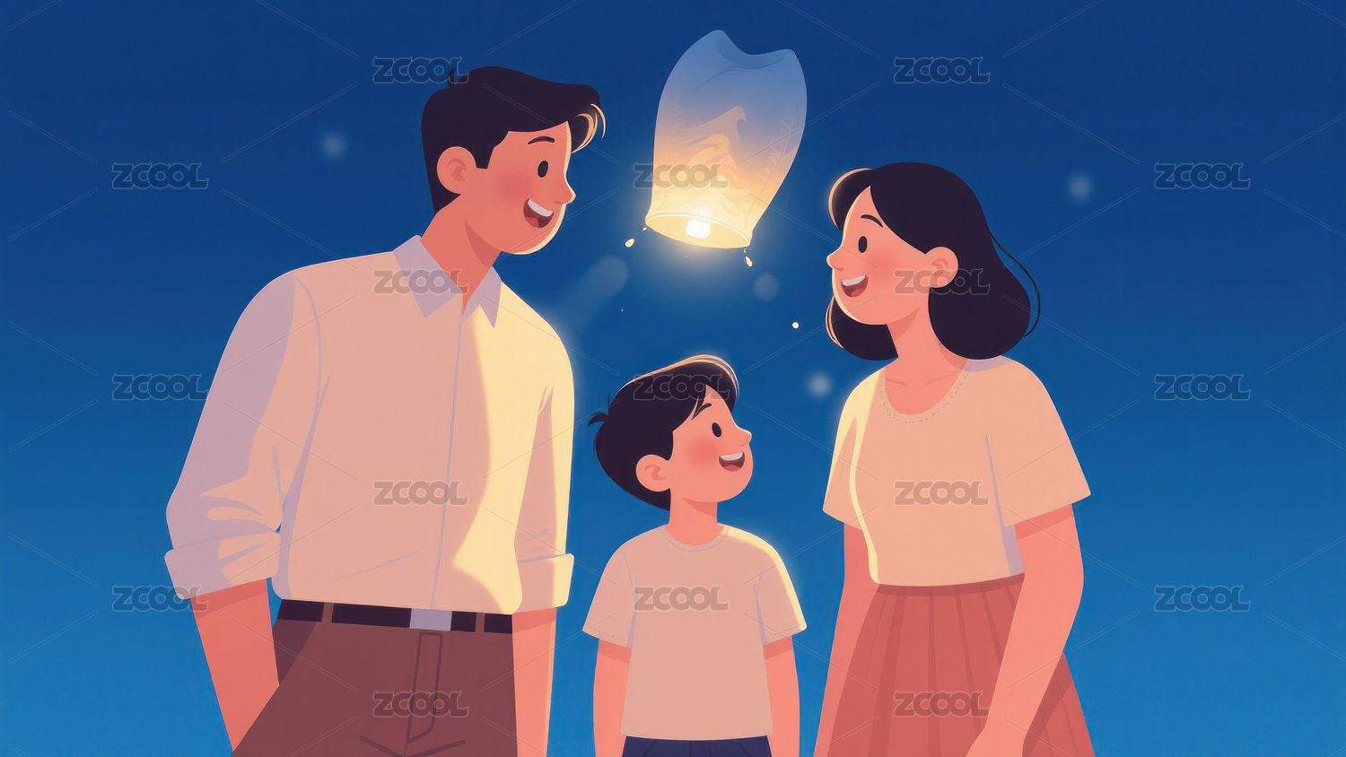 一家人,夜晚,孔明灯,父母,孩子,傍晚,户外,灯笼,星星,亲情