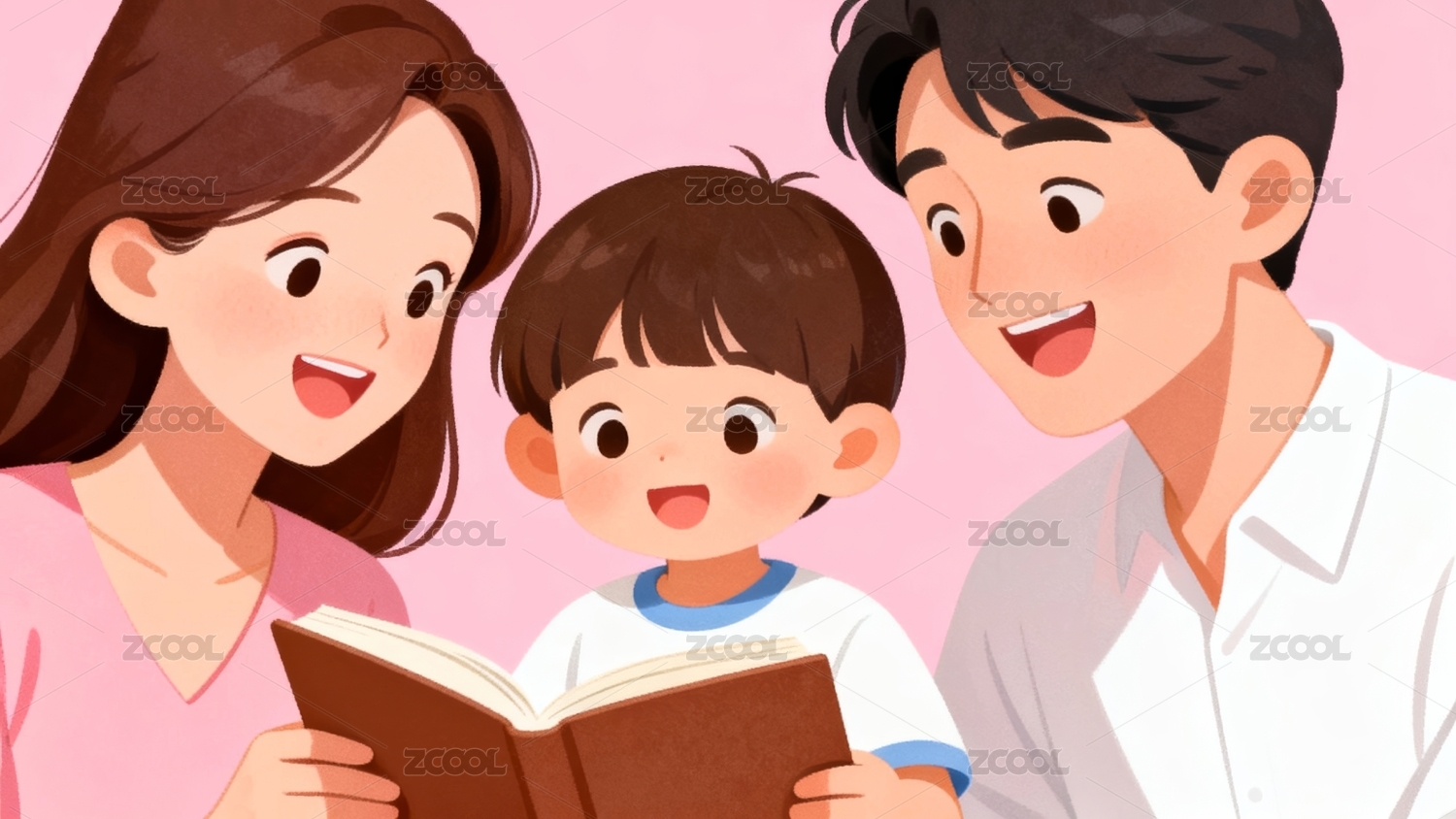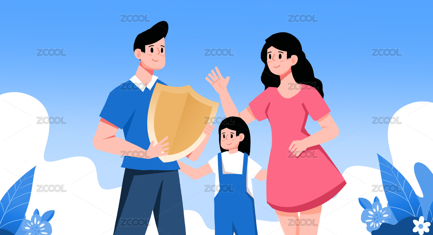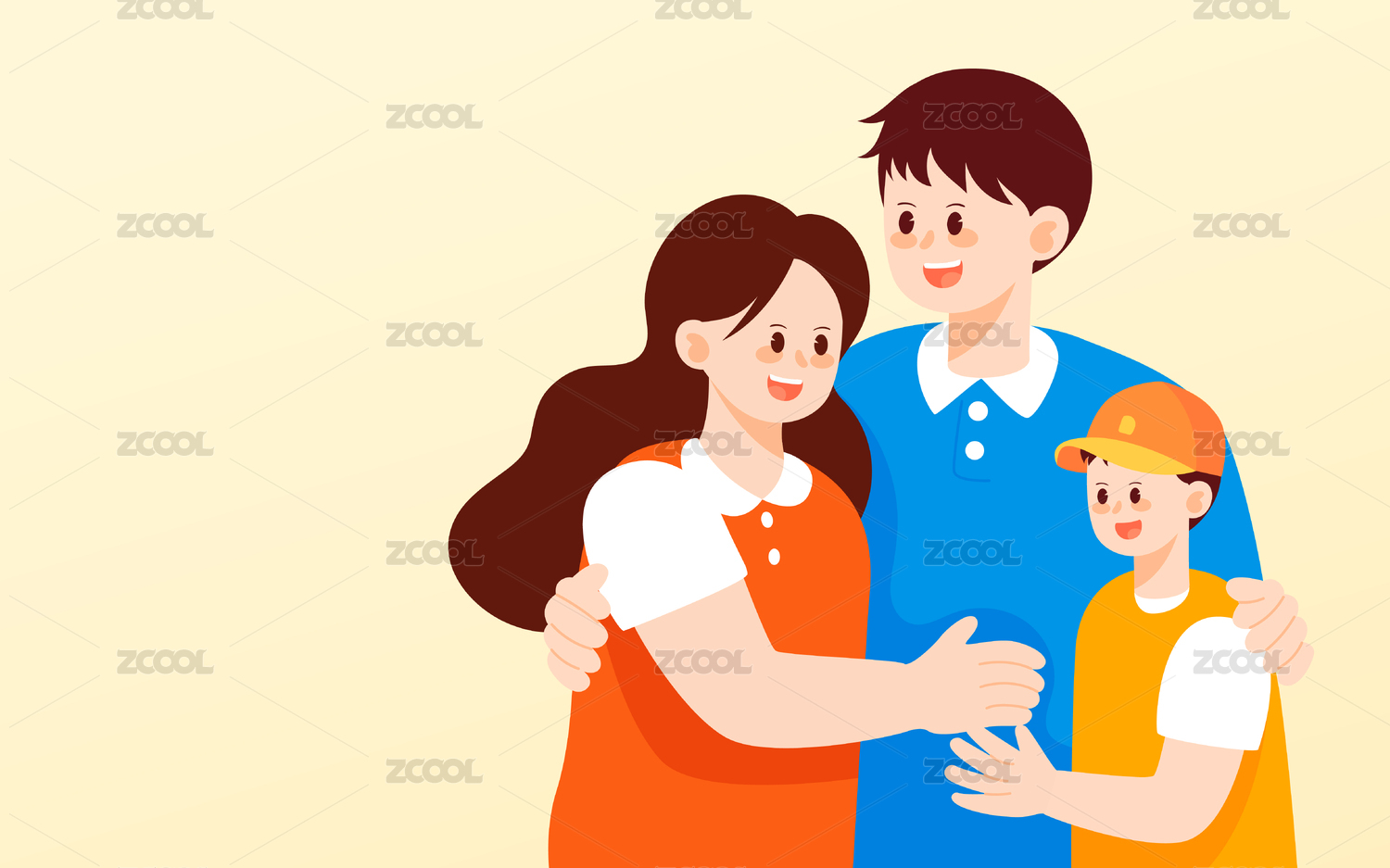 父亲节儿童节一家人亲子玩乐拥抱家庭插画