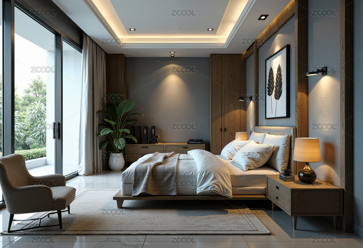 卧室,日式,现代,弧形,木质,墙面,平台,床,床品,大地