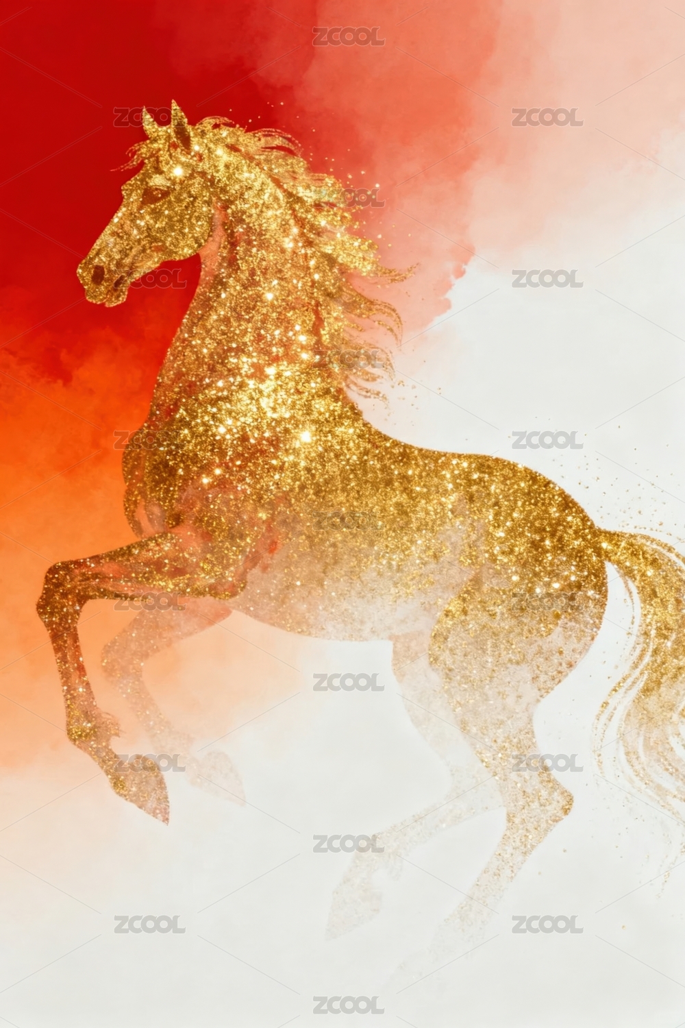 金色,奔马,艺术,图像,红色,背景,动感,力量,活力,自由