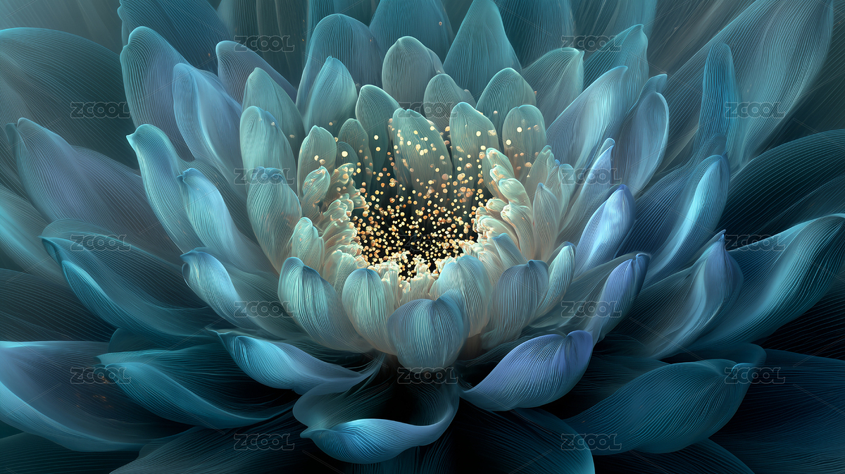 蓝花,绽放,花蕊,发光,层叠,花瓣,光效,柔光,幻彩,梦境