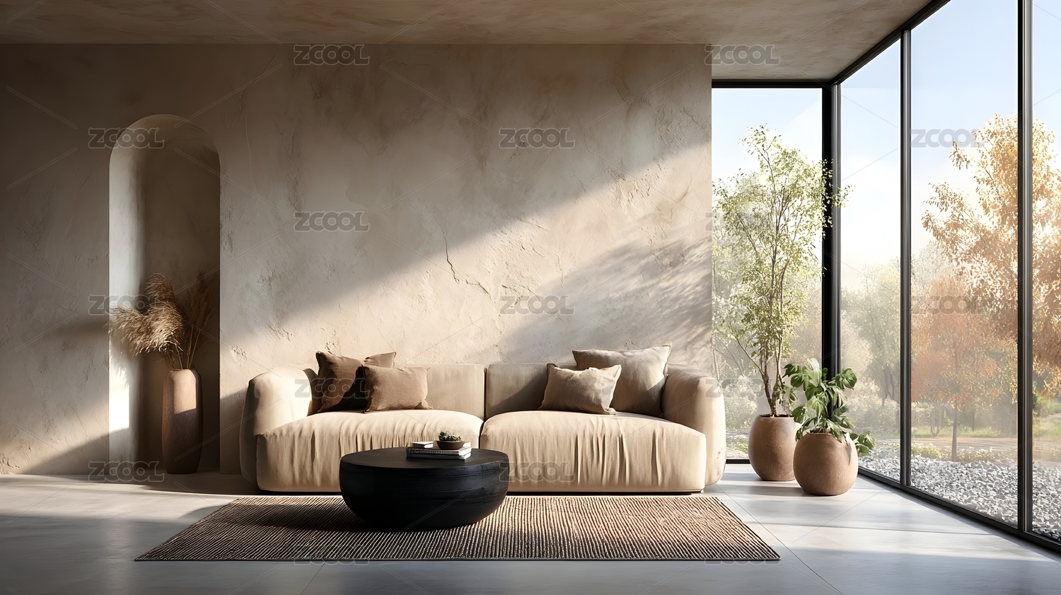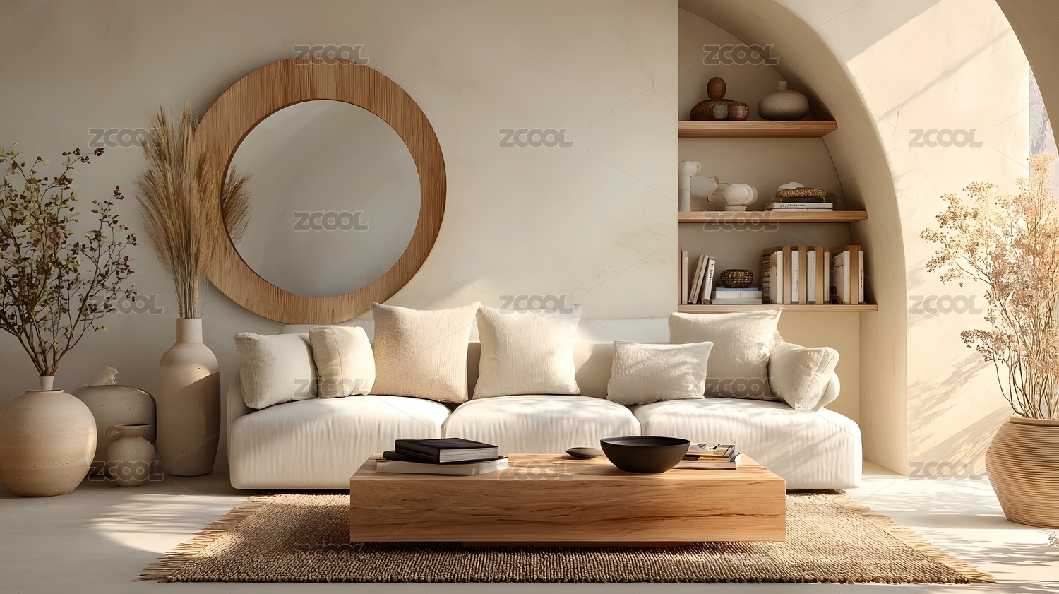 日式,北欧,地毯,雕塑,家具,白沙,光线,圆形,空间,对称