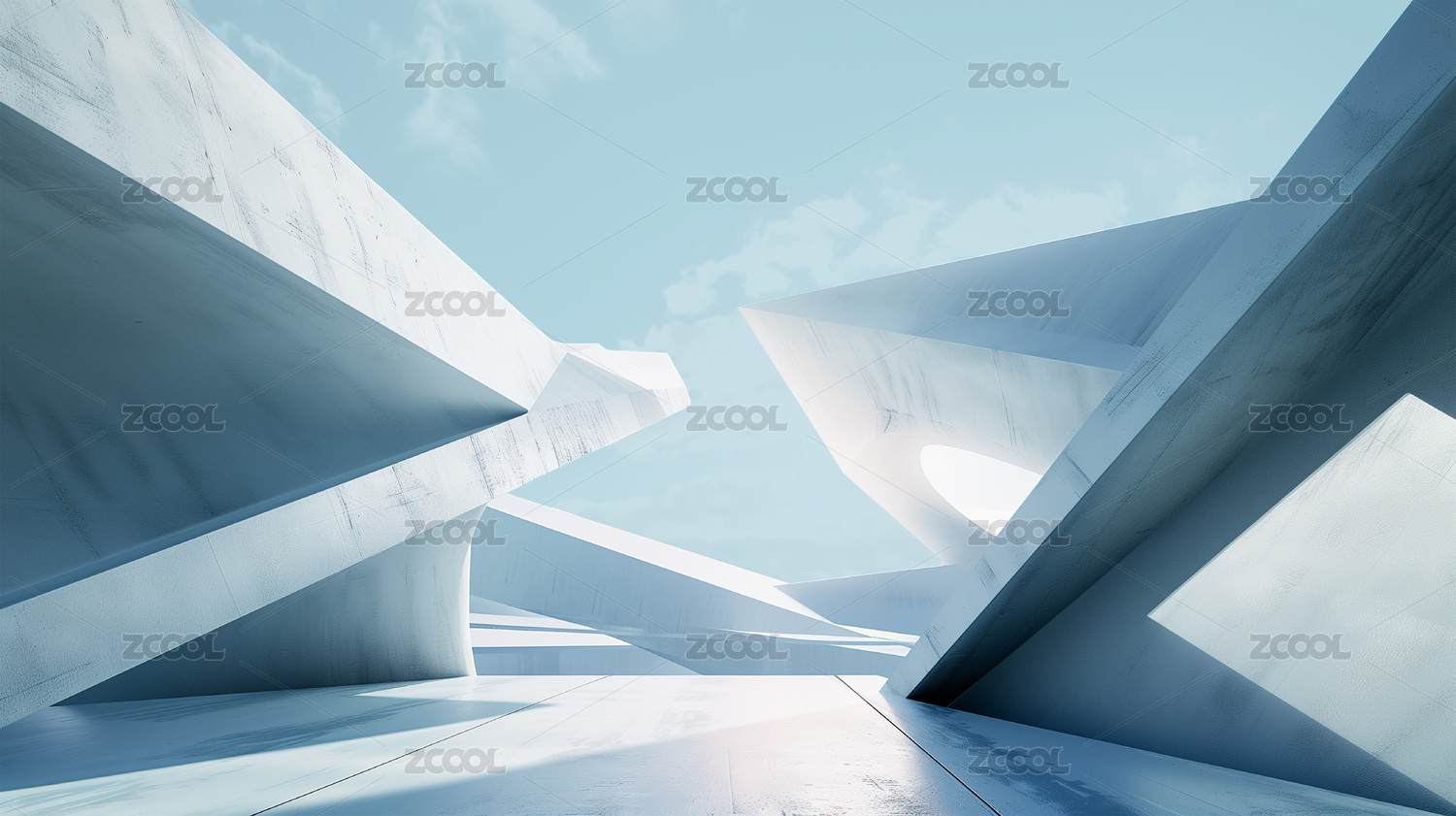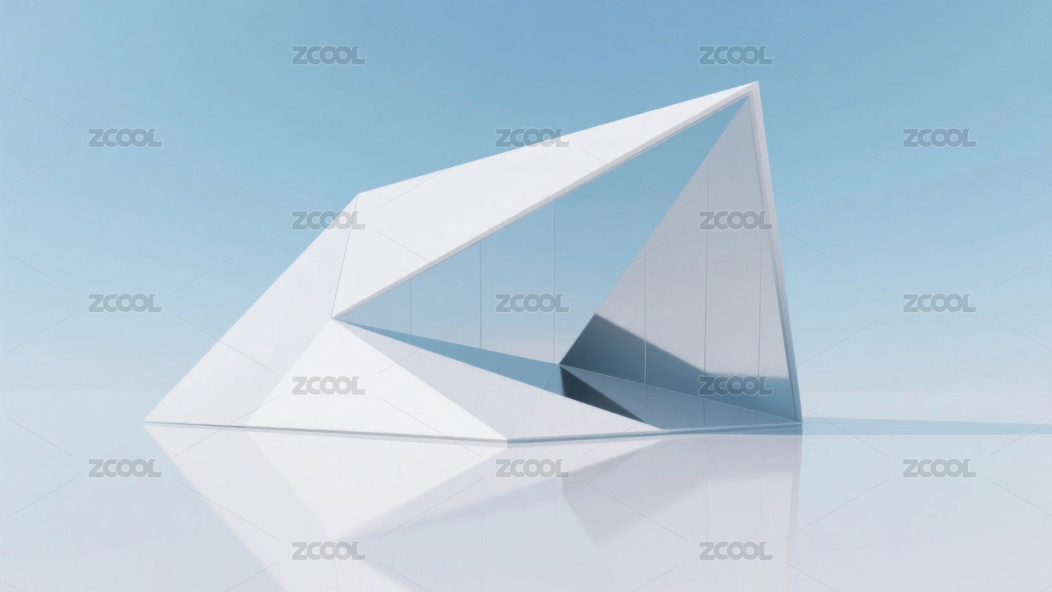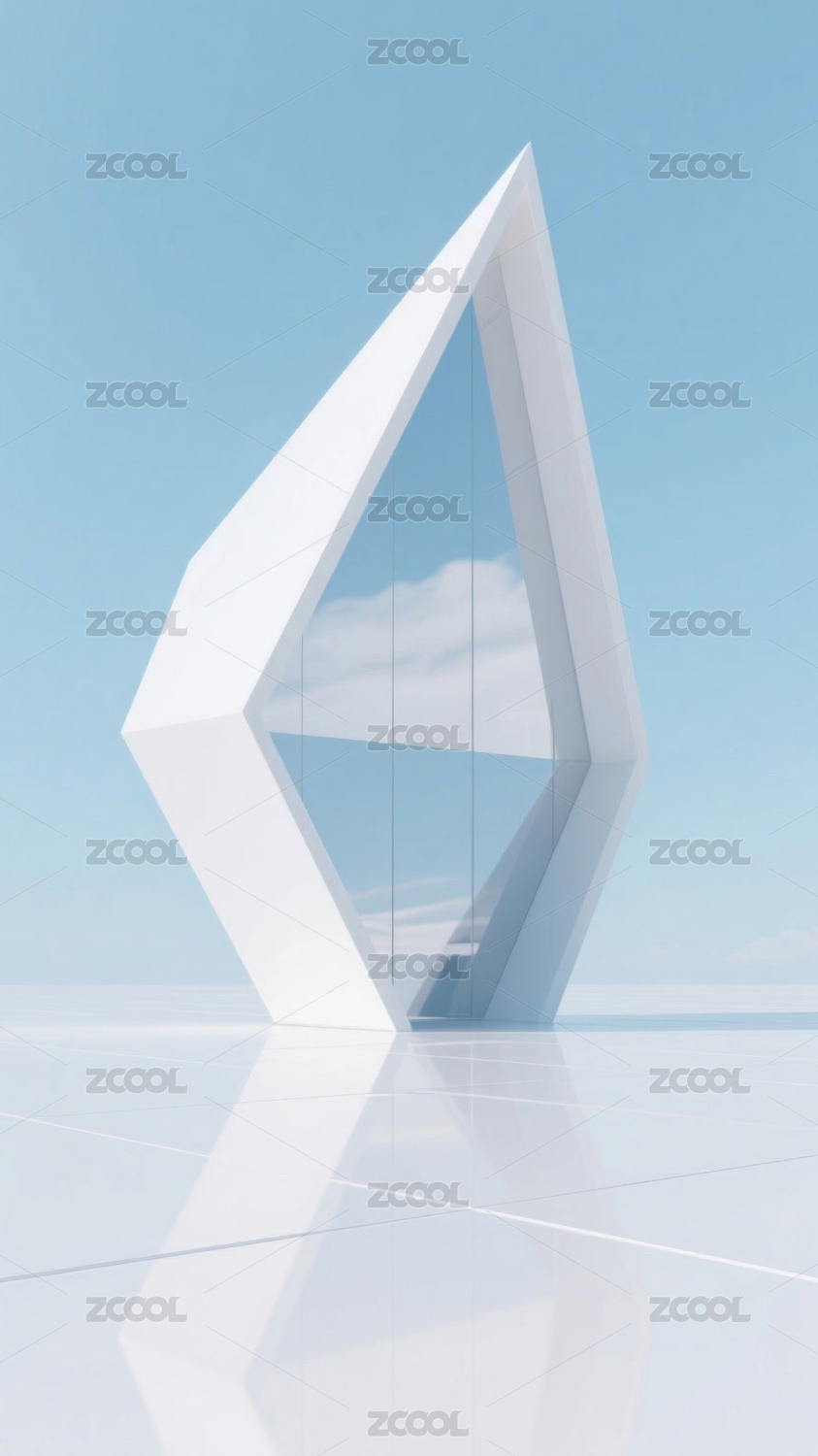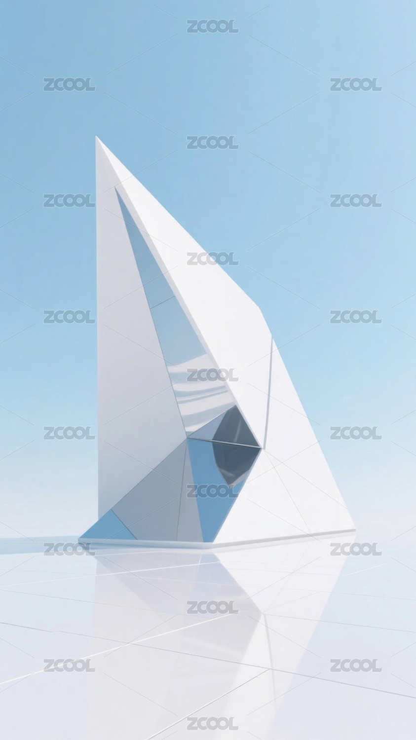 现代,几何,白色,结构,反射,极简,3D,设计,建筑,简洁