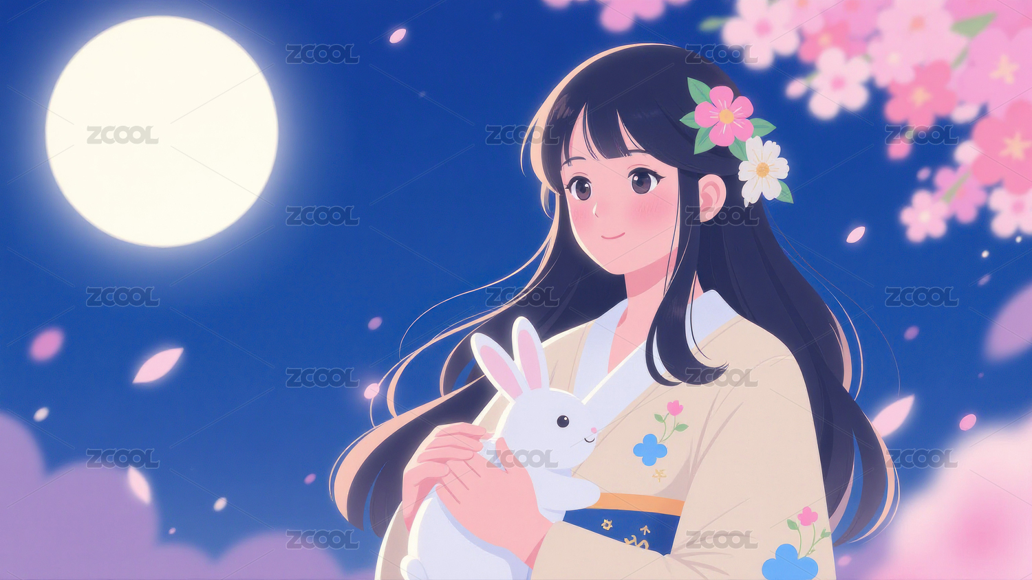 中秋节,嫦娥,玉兔,月亮,团圆,中国风,传统节日,卡通,女孩,兔子