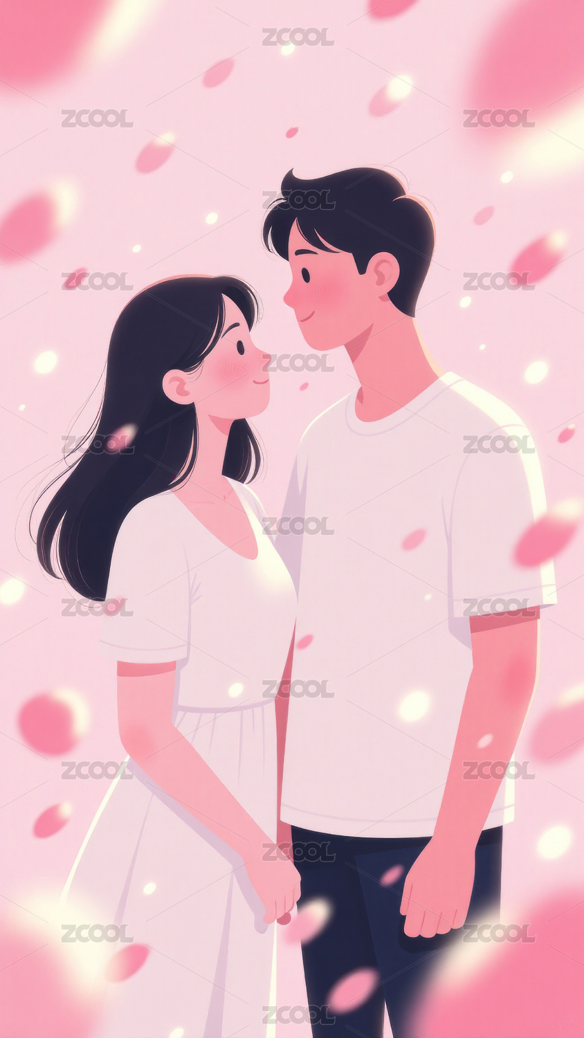 花瓣雨中的浪漫爱情心动时刻的爱情告白