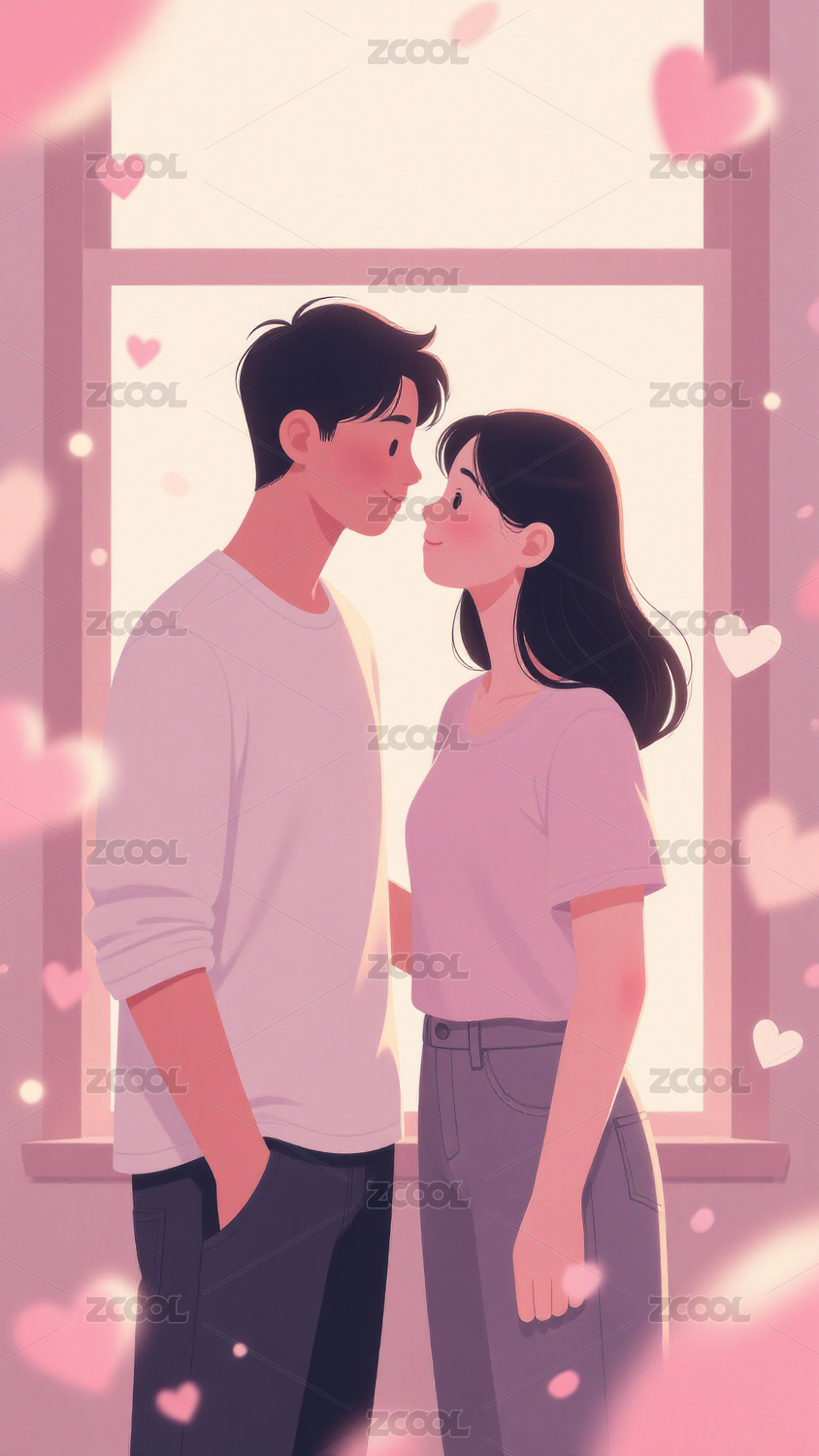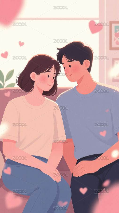 情侣间的甜蜜依偎情侣间的甜蜜瞬间情侣插画