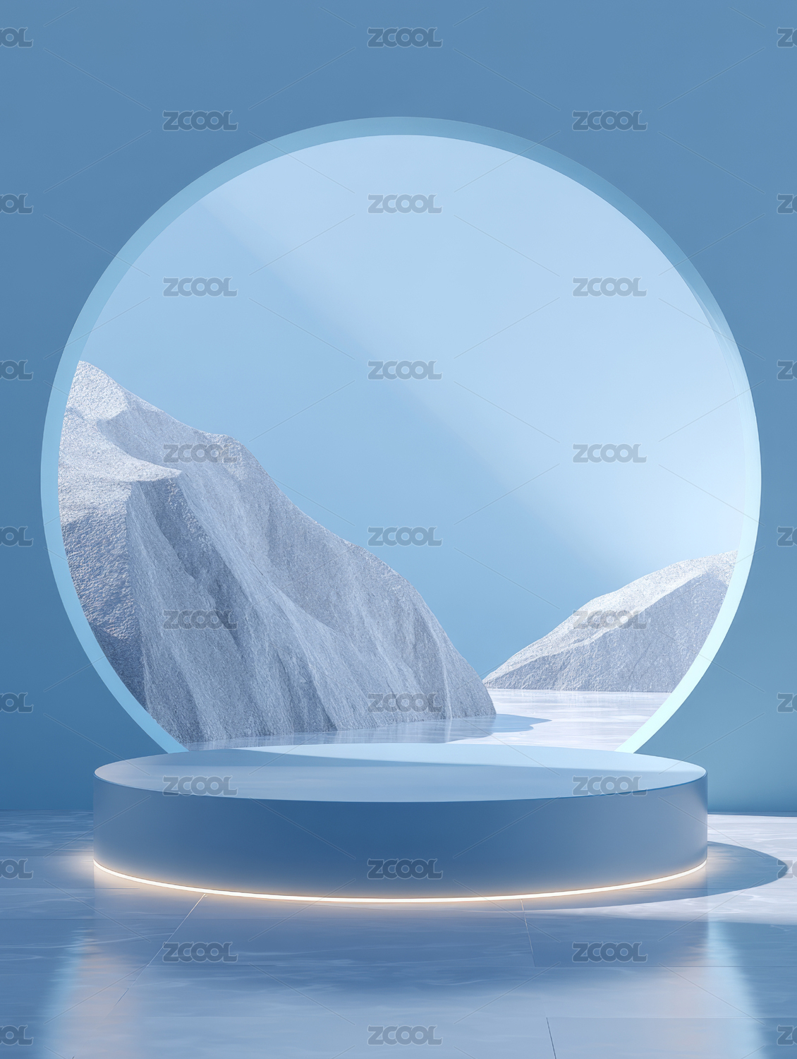 雪山,月亮,展示台,圆形,灯光,背景,简约,现代,艺术,设计