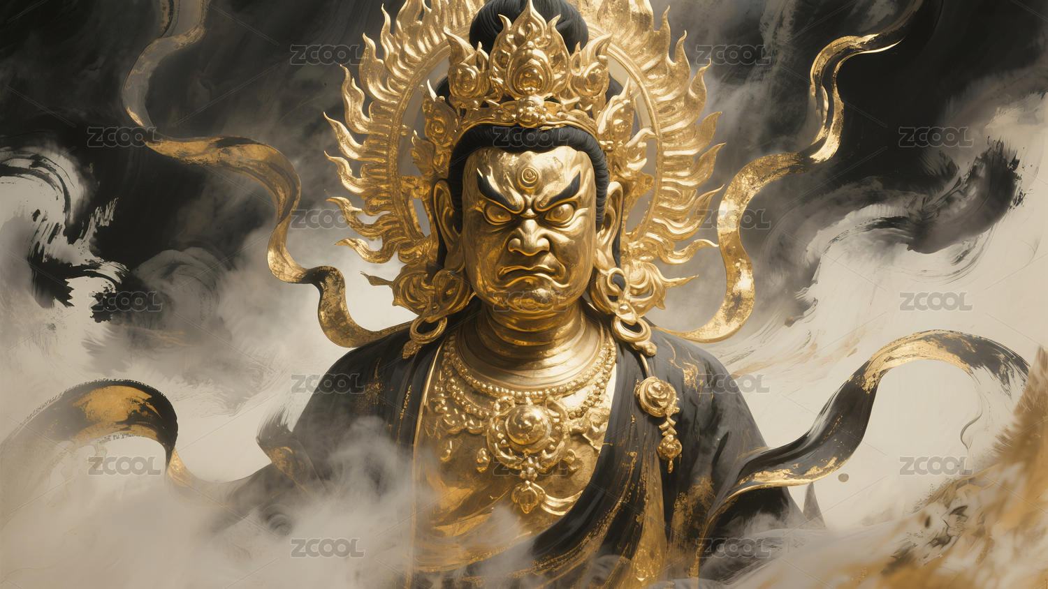 国风,不动明王,神话,神明,传说,黑色,金色,背景,海报,封面