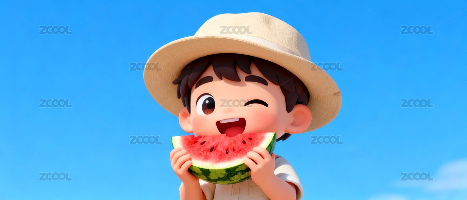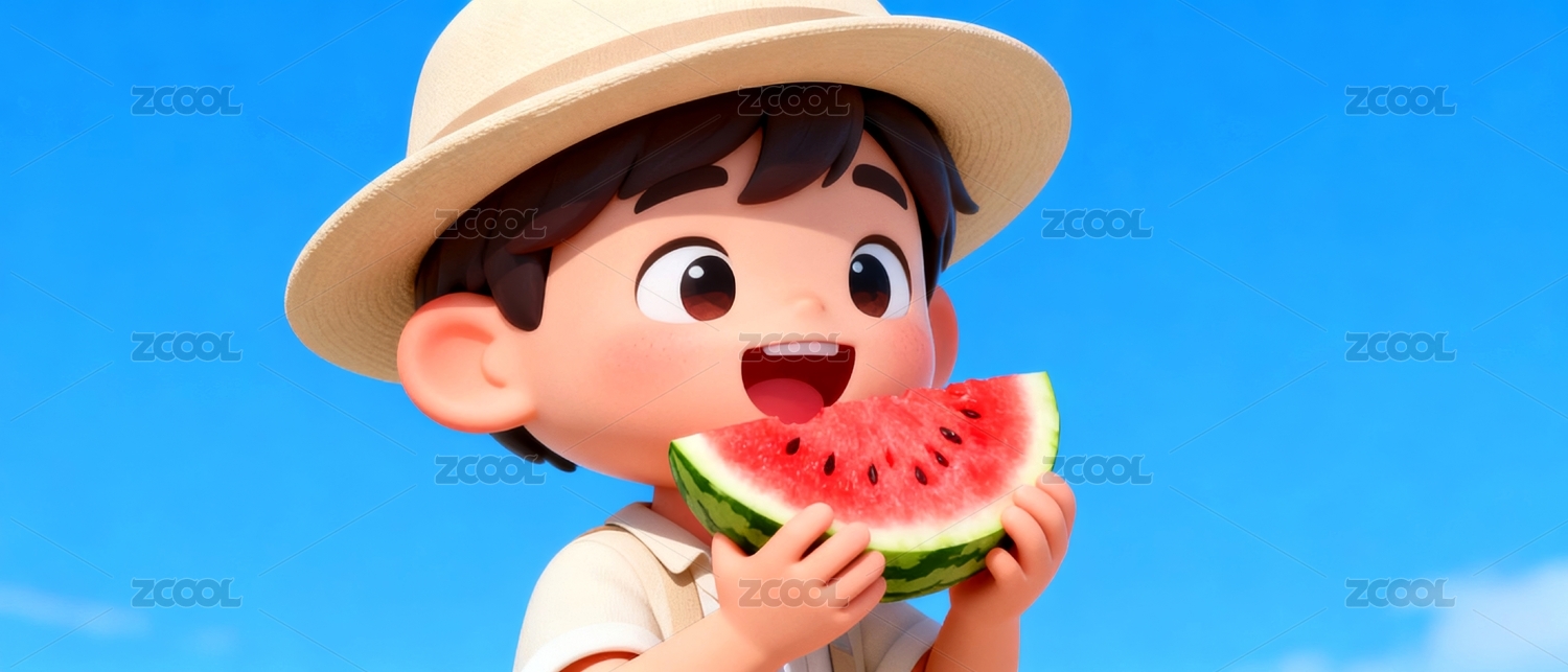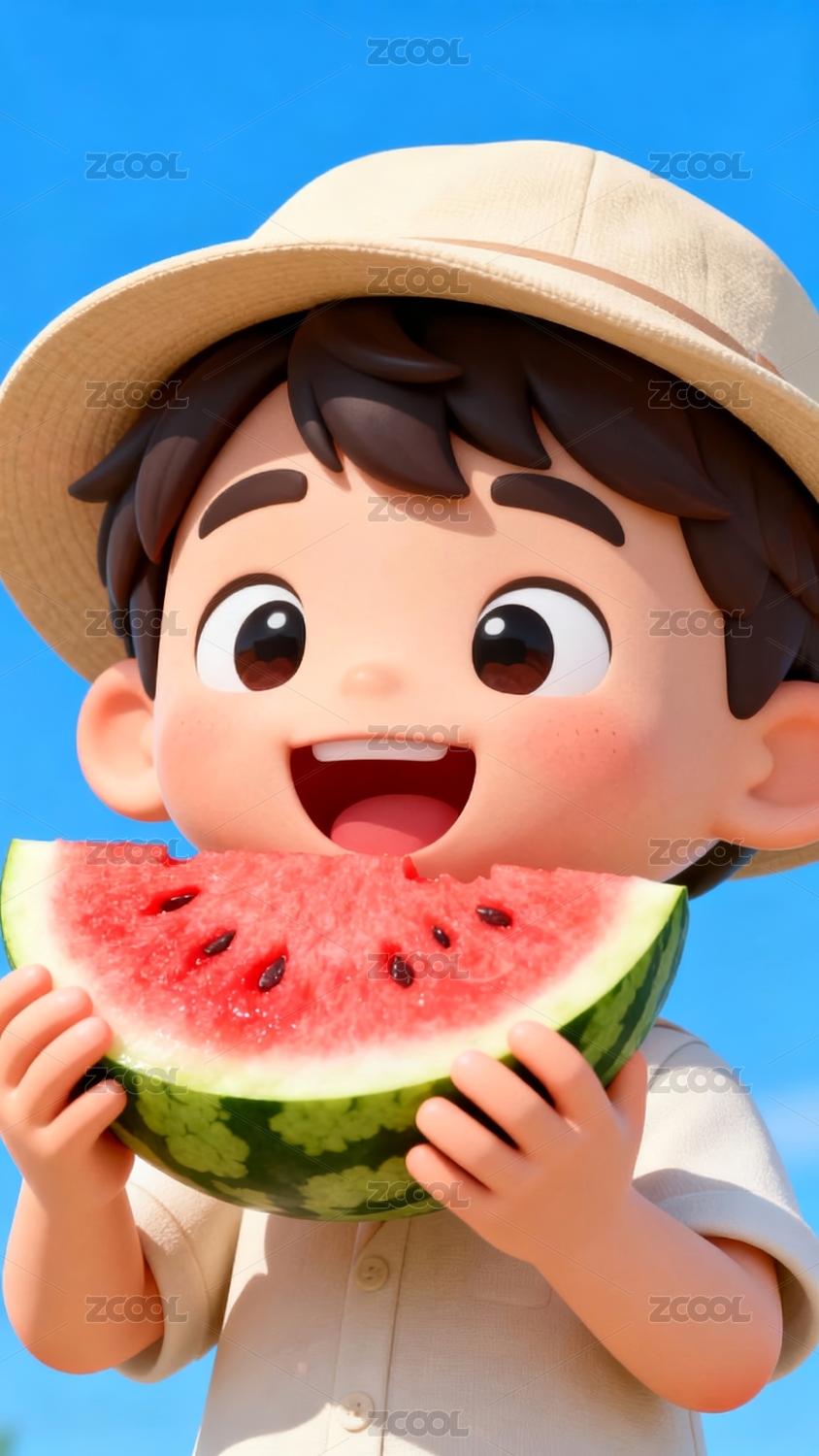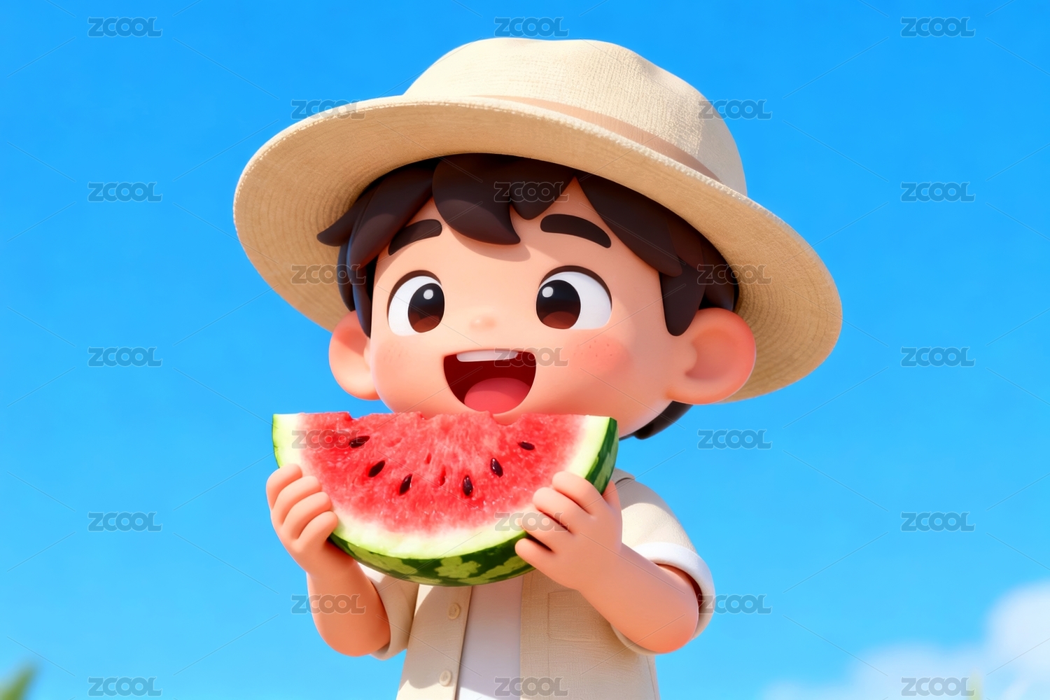 小男孩,西瓜,夏季,水果,开心,笑脸,卡通,儿童,清凉,快乐