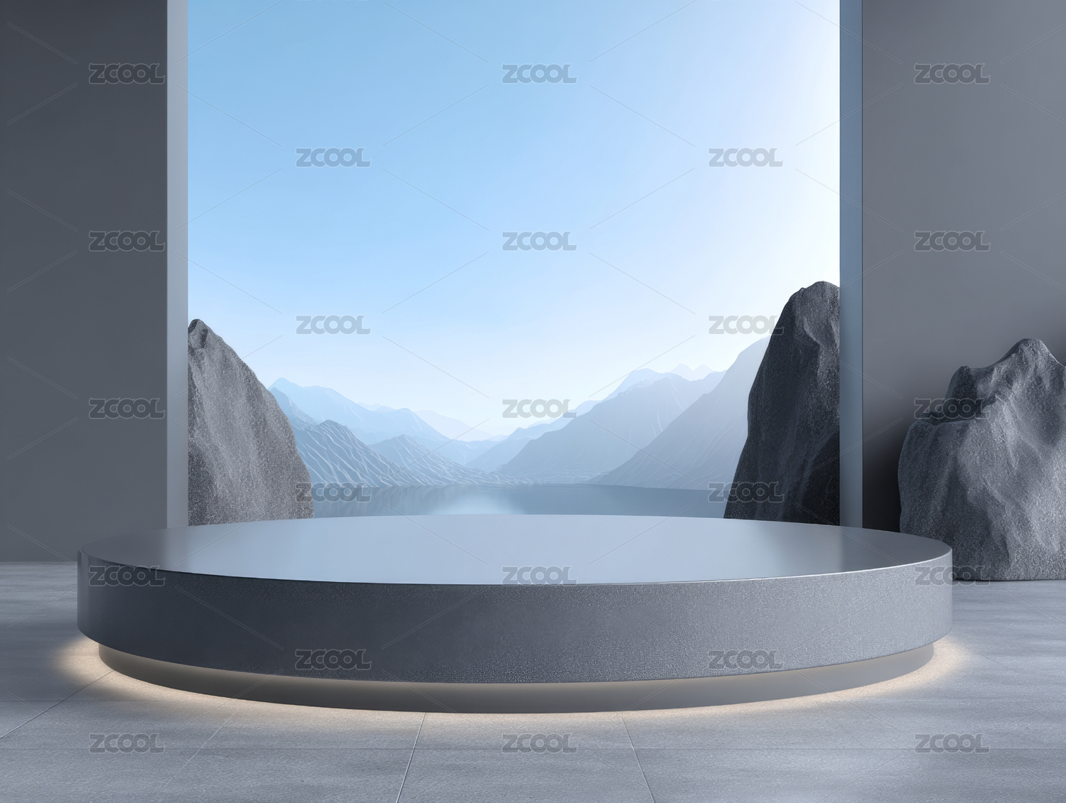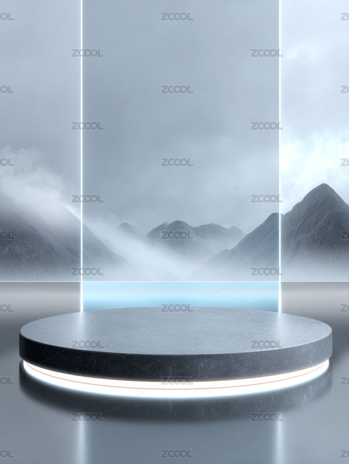 山景,展示台,未来感,灰色调,现代,设计,光效,室内,舞台,抽象